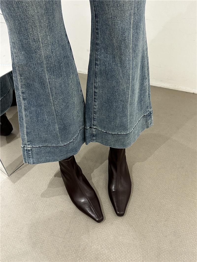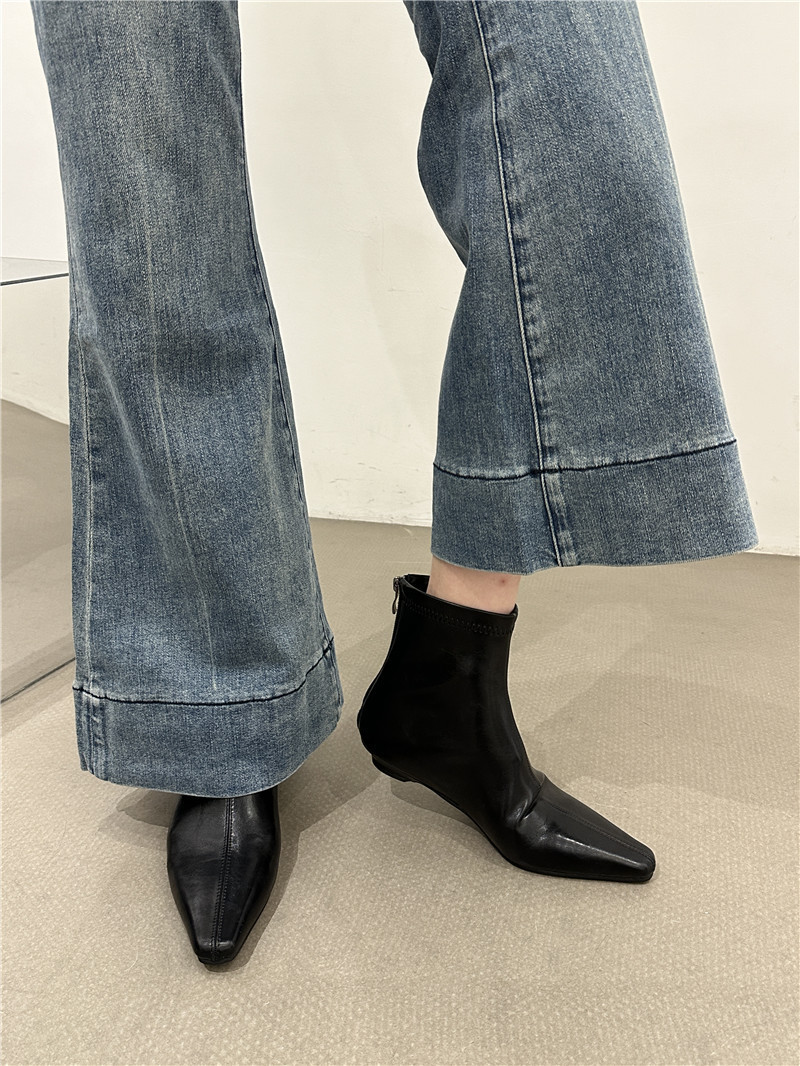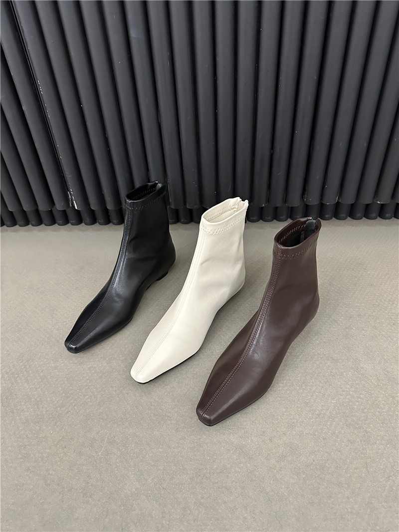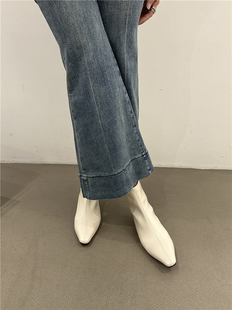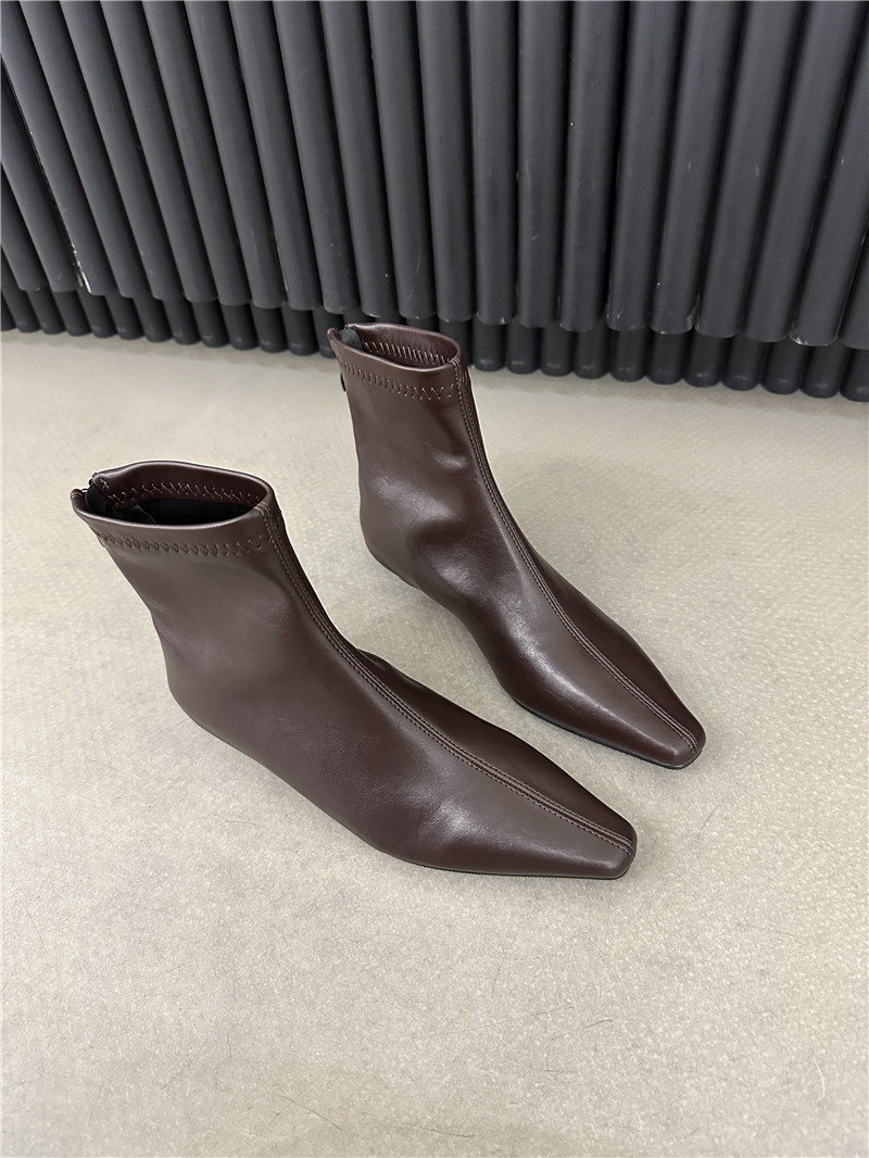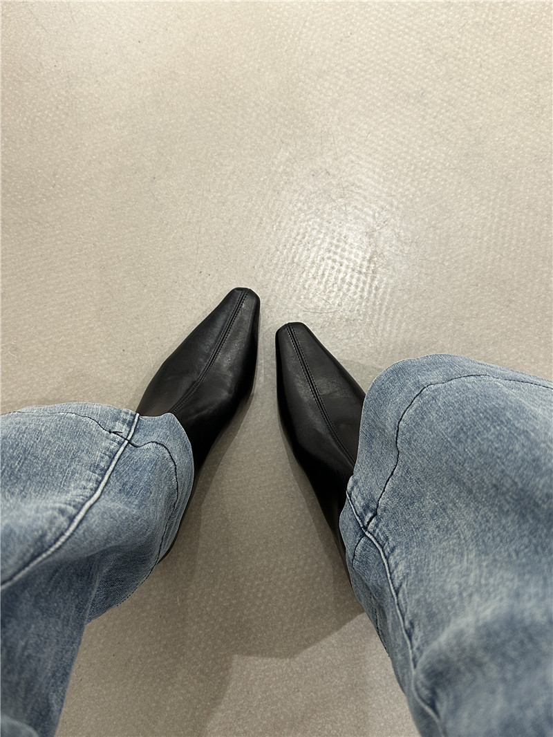 기질 낮은 뒤꿈치 사각형 머리 기모 짧은 부츠 여성 2024 가을과 겨울 새로운 간단한 여성 부츠 짧은 부츠 프랑스 얇은 부츠스토어 가기