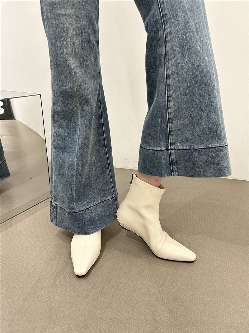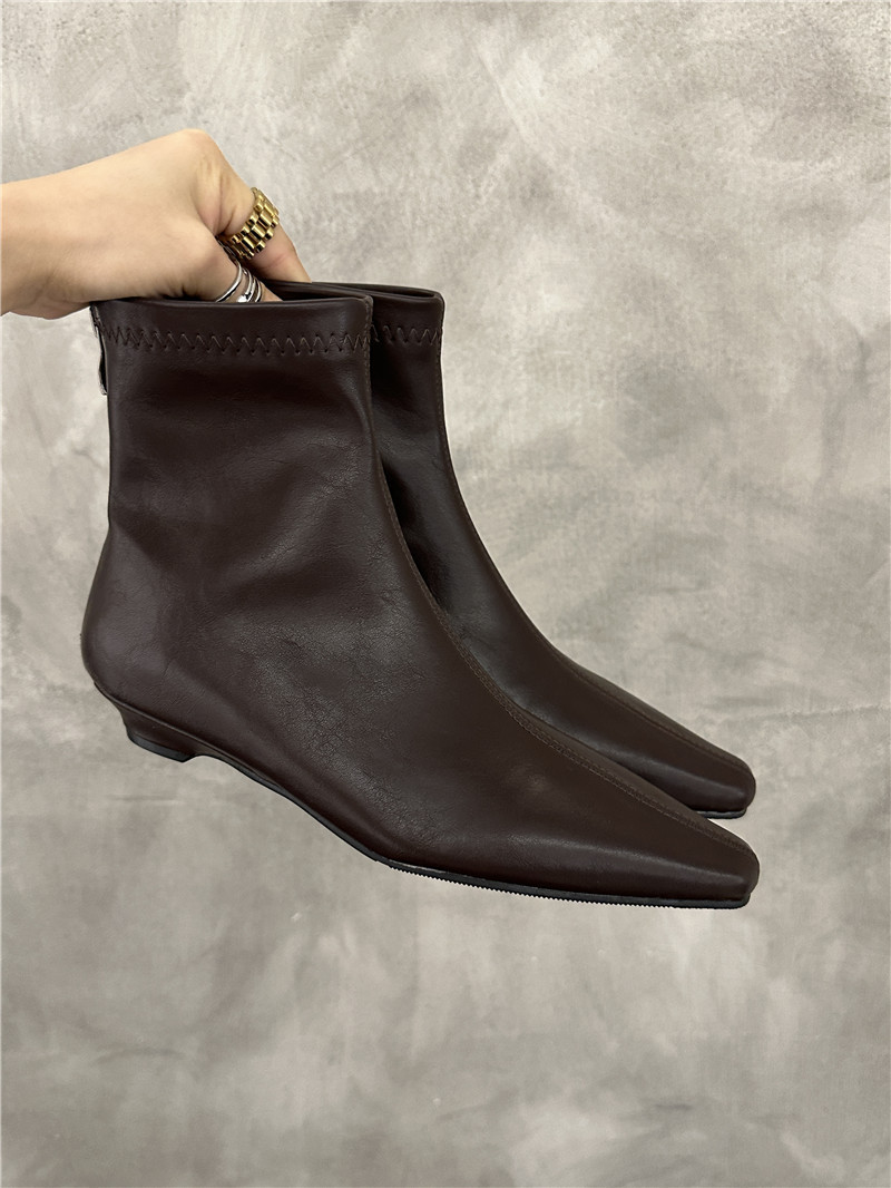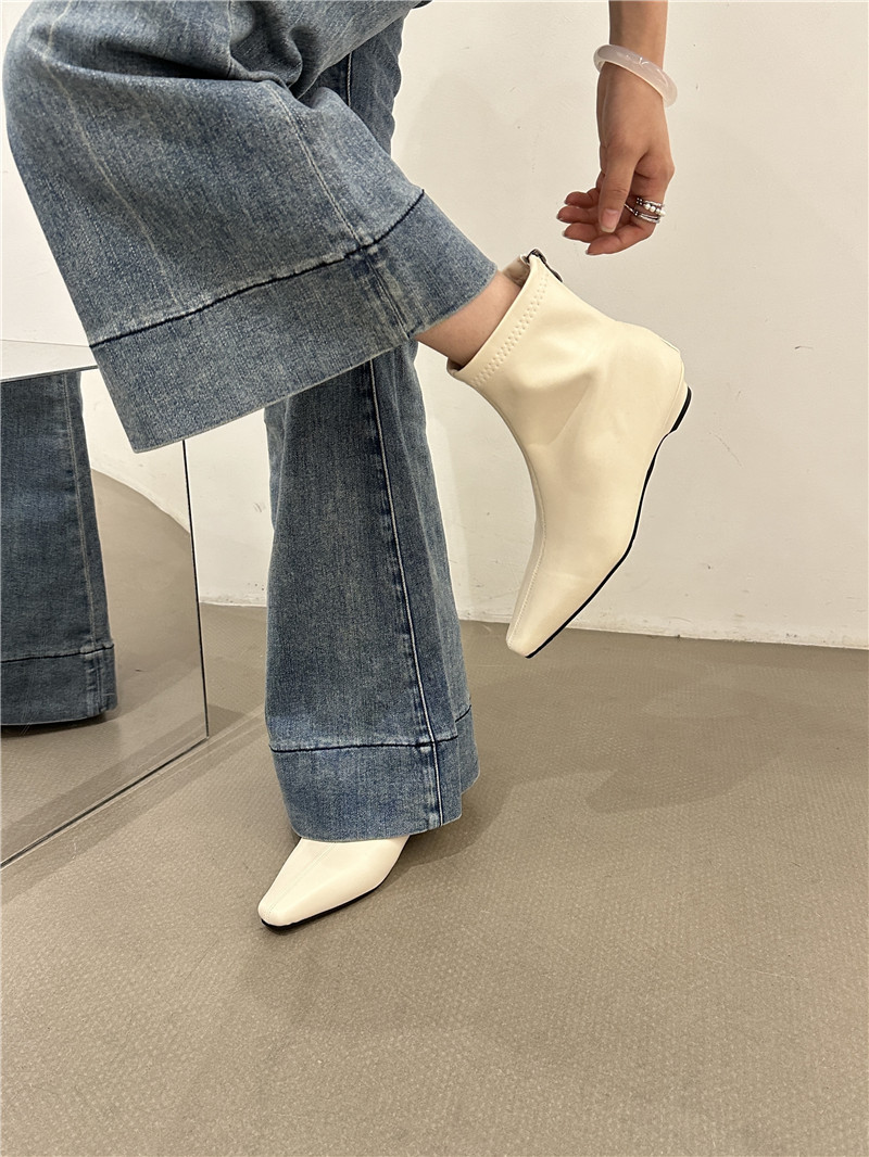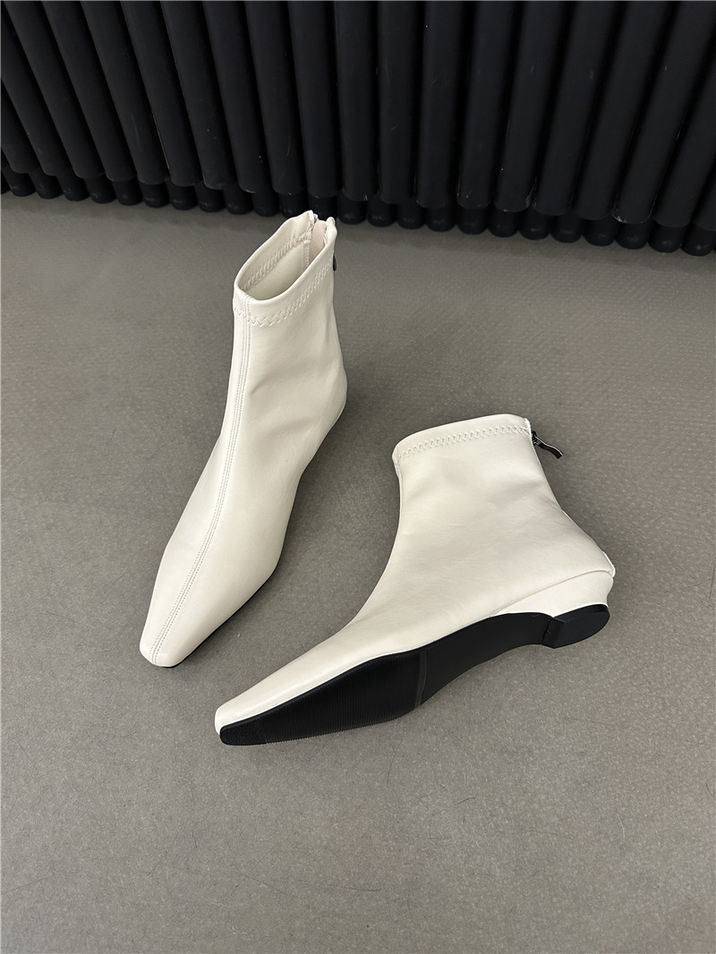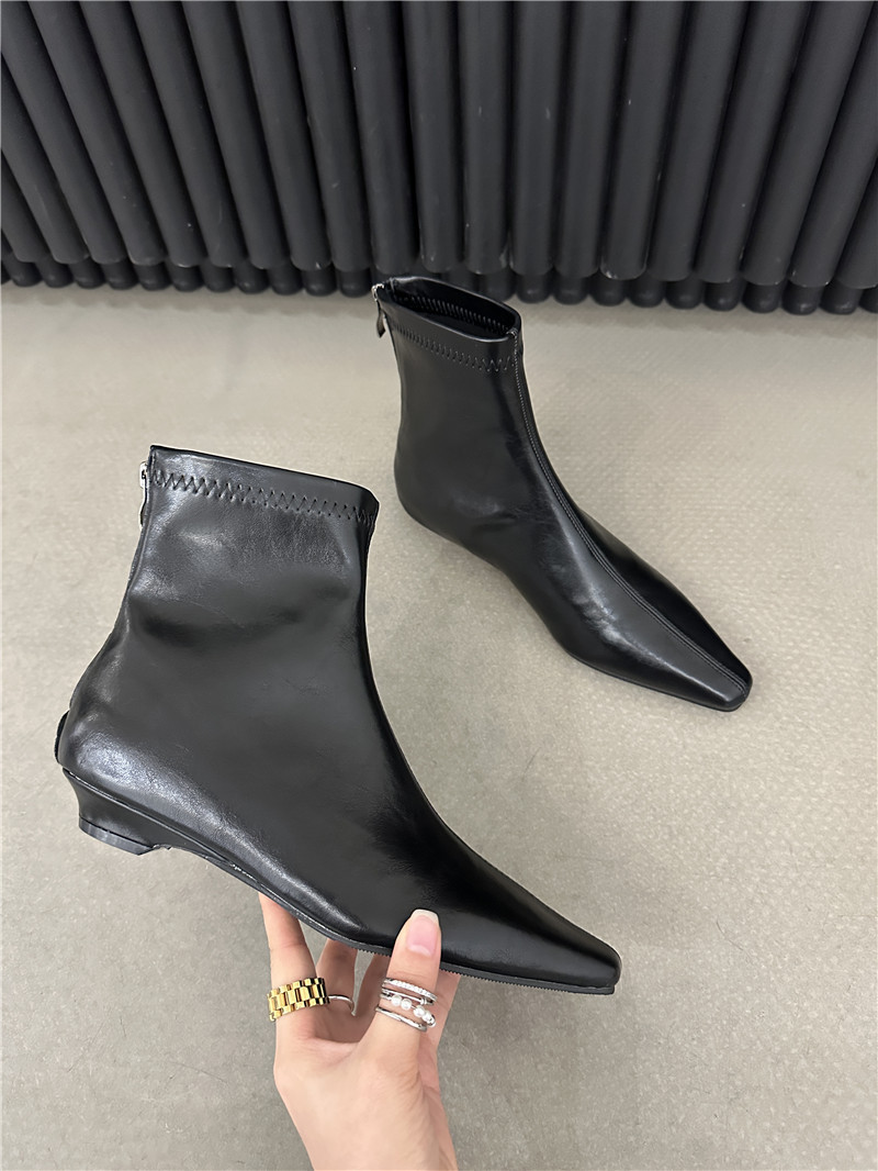 기질 낮은 뒤꿈치 사각형 머리 기모 짧은 부츠 여성 2024 가을과 겨울 새로운 간단한 여성 부츠 짧은 부츠 프랑스 얇은 부츠스토어 가기