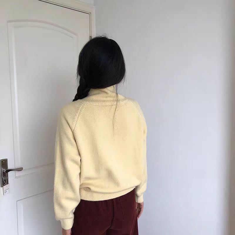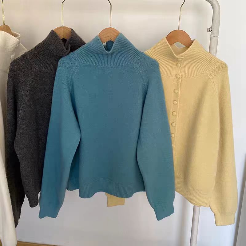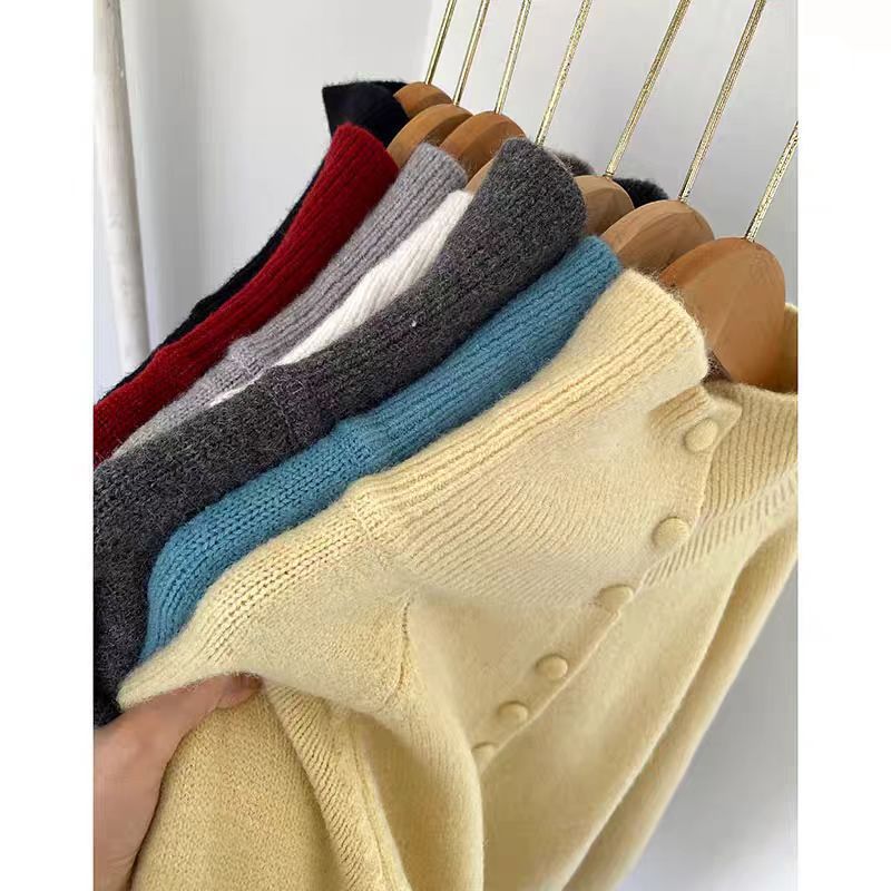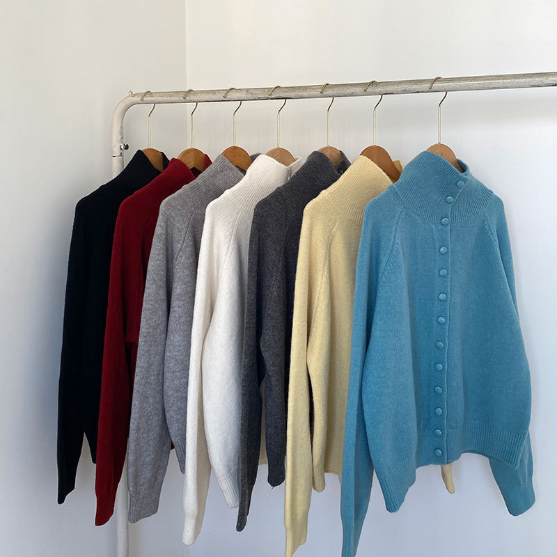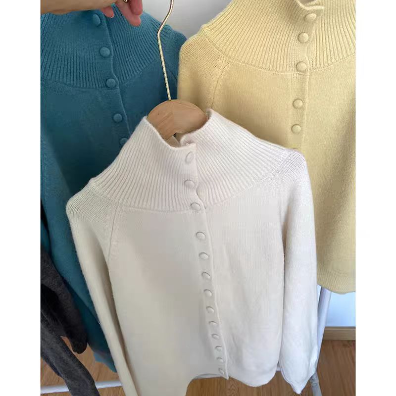 가을과 겨울 새로운 하이 칼라 니트 카디건 여성 레트로 한국 스타일 게으른 스타일 느슨한 스웨터 여성 코트스토어 가기