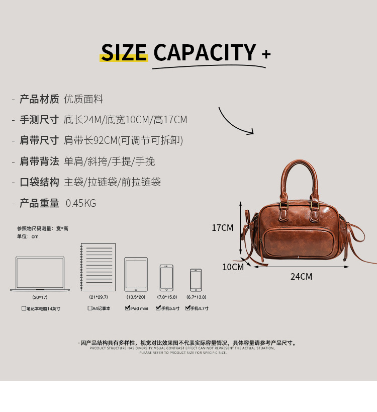 HENGJINGYX 가을과 겨울 하이 엔드 텍스처 레트로 보스턴 간단한 어깨 핸드백 대용량 배낭스토어 가기