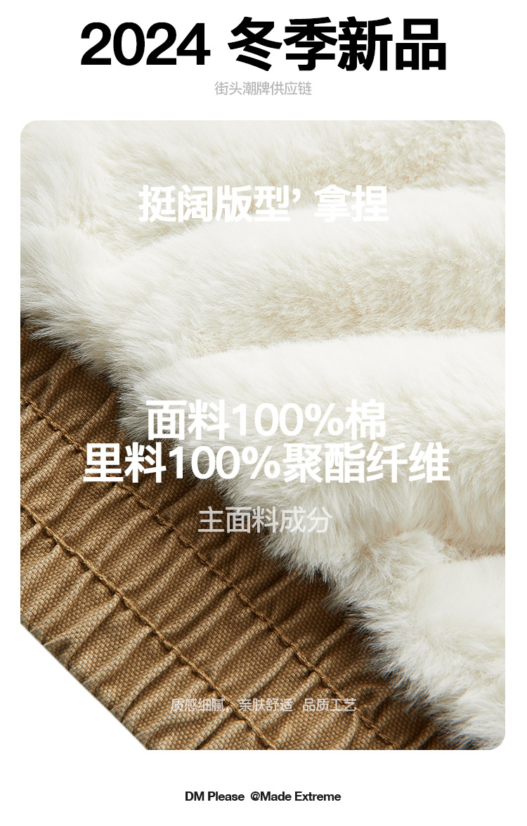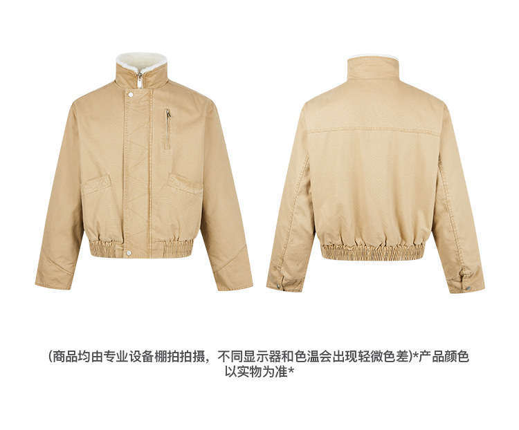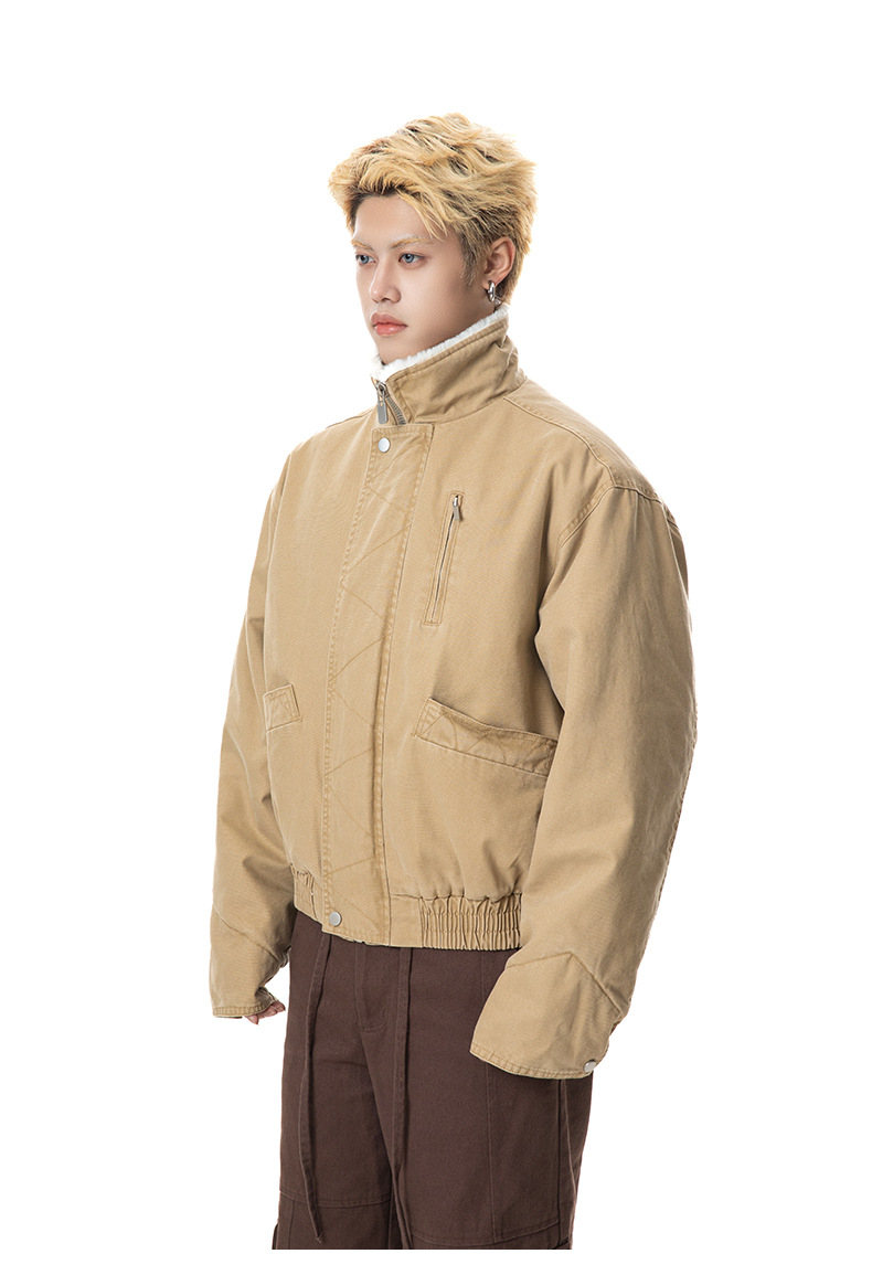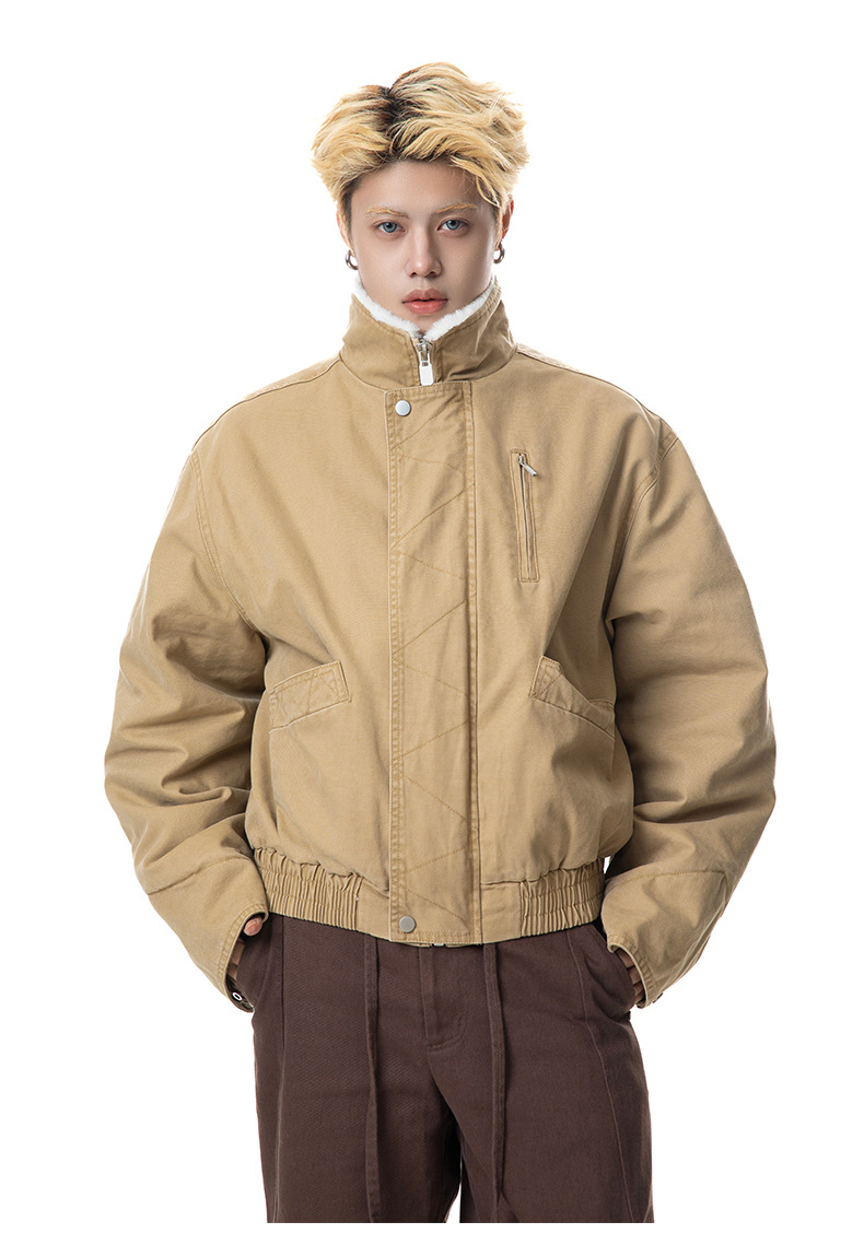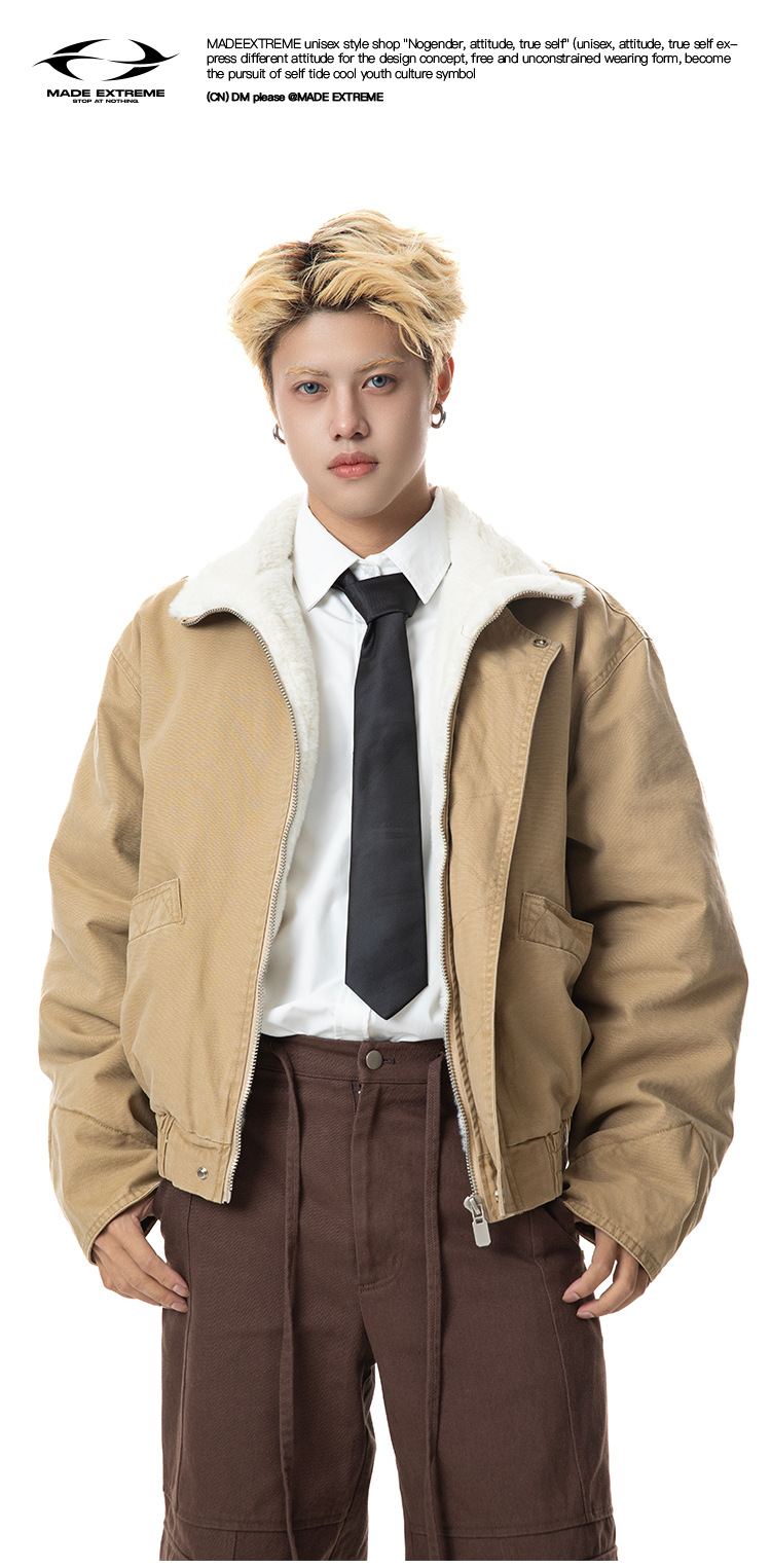 MADEEXTREME 아메리칸 스타일 레트로 가을과 겨울 두꺼운 따뜻한 모방 토끼 모피 및 벨벳 내부 높은 칼라 재킷 남성용스토어 가기