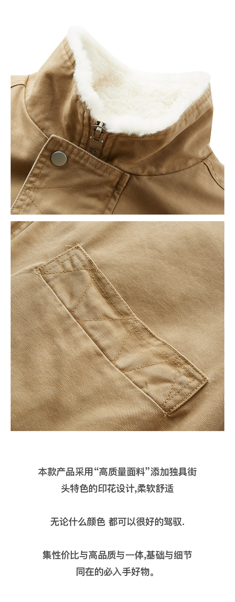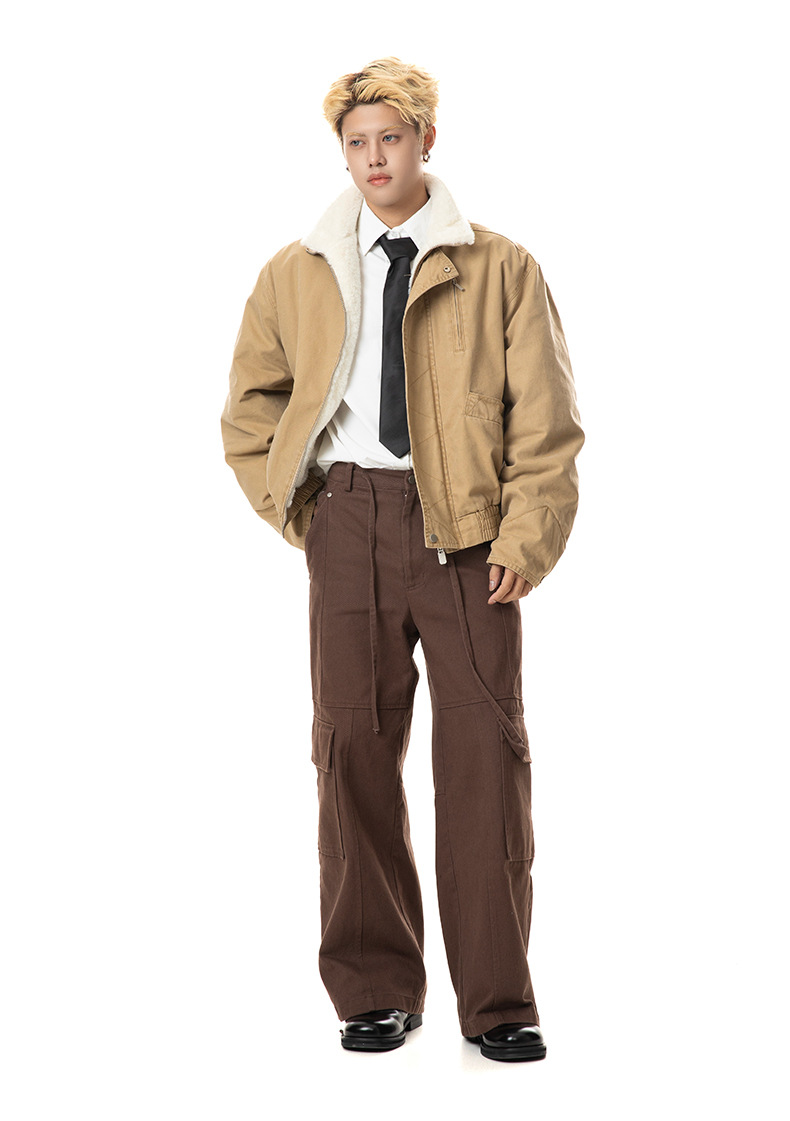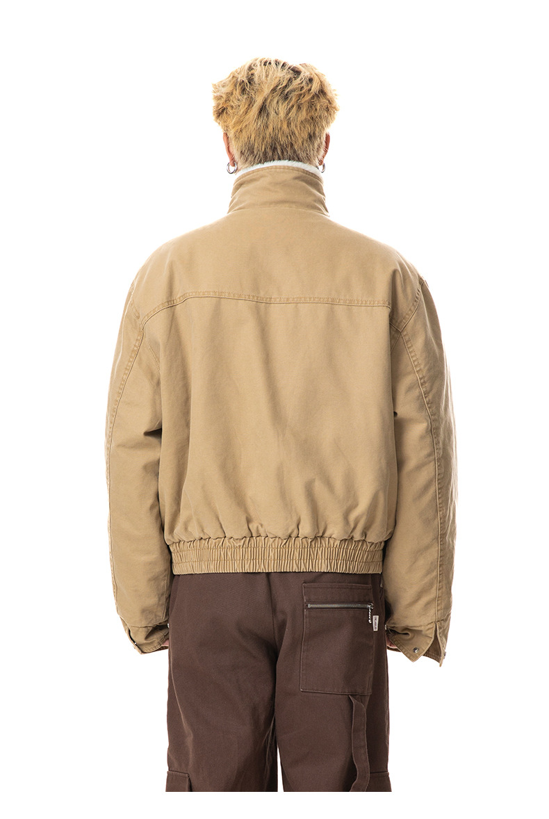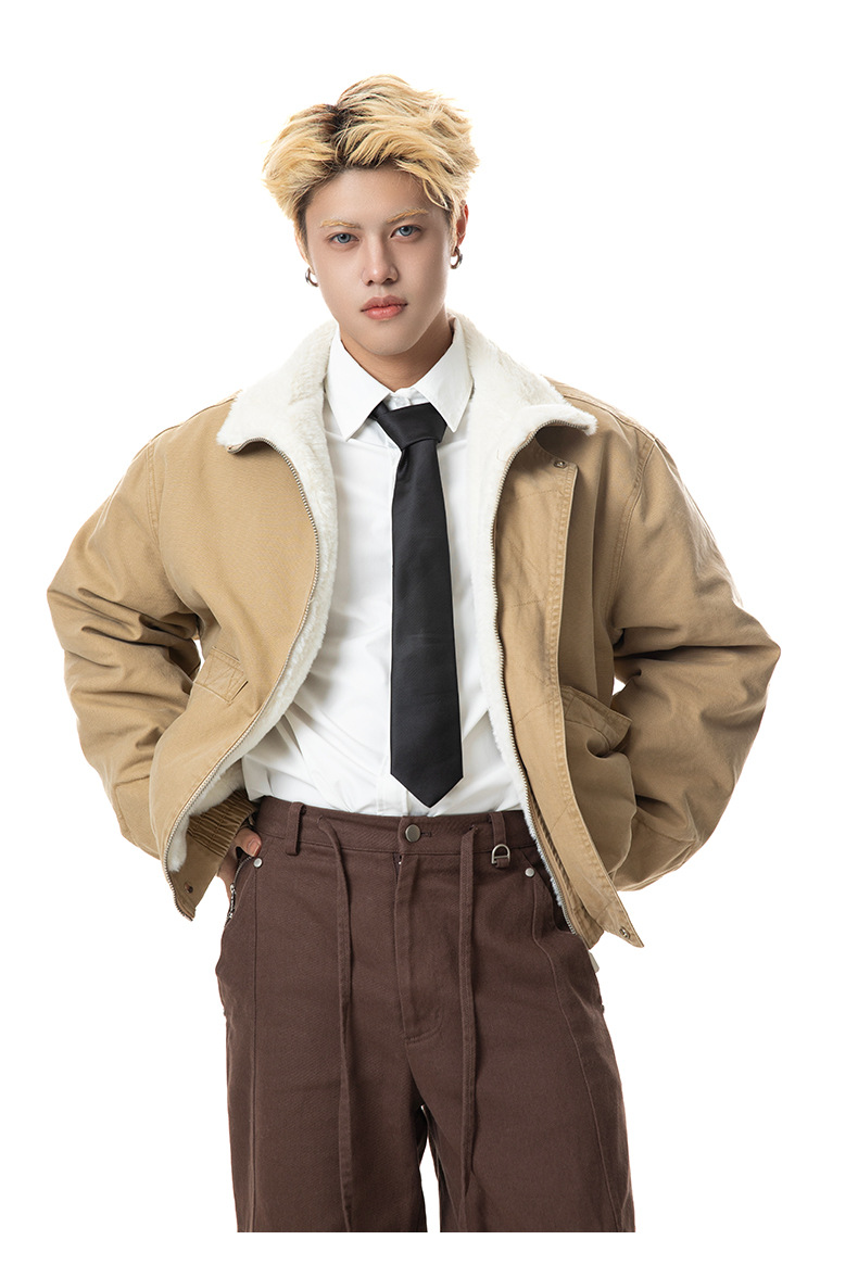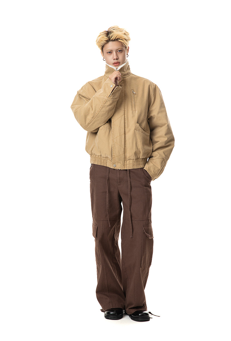 MADEEXTREME 아메리칸 스타일 레트로 가을과 겨울 두꺼운 따뜻한 모방 토끼 모피 및 벨벳 내부 높은 칼라 재킷 남성용스토어 가기