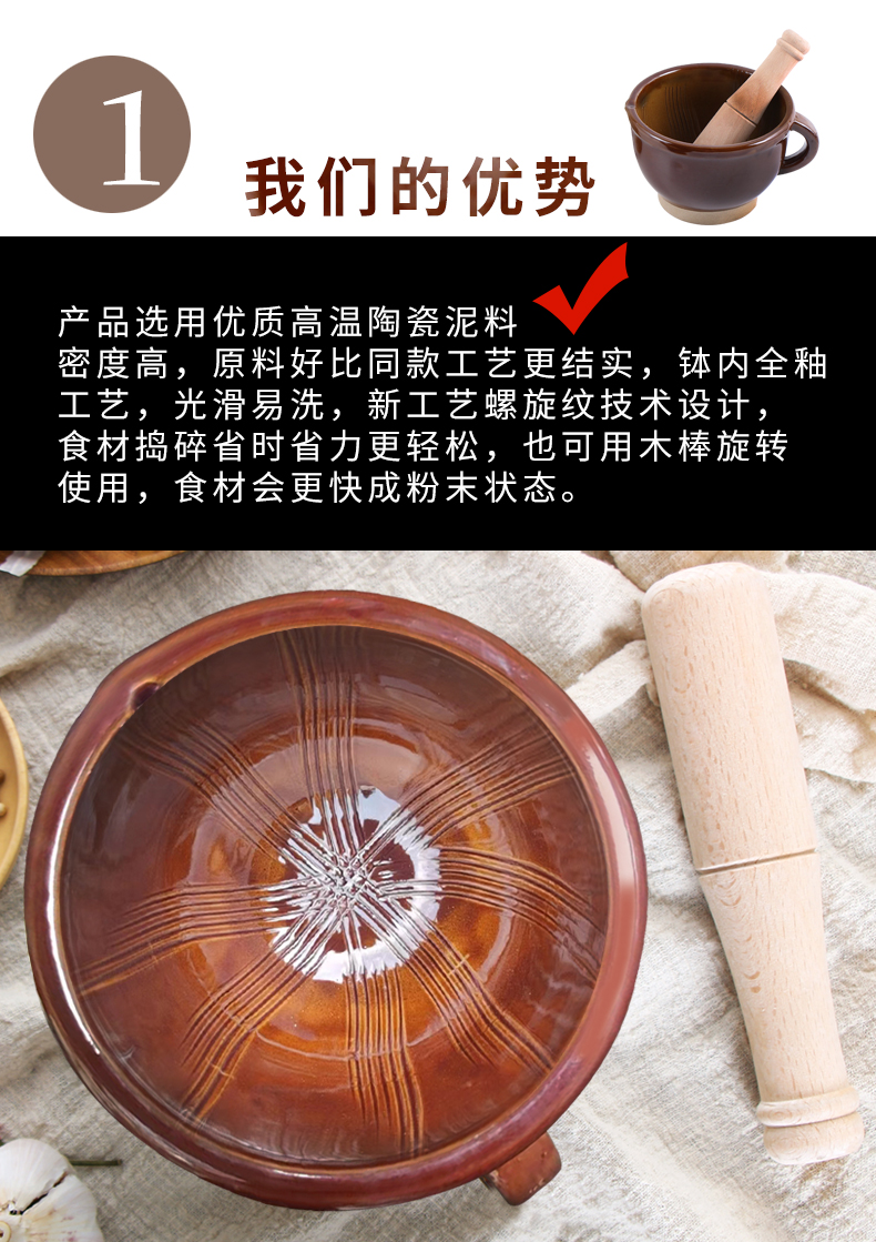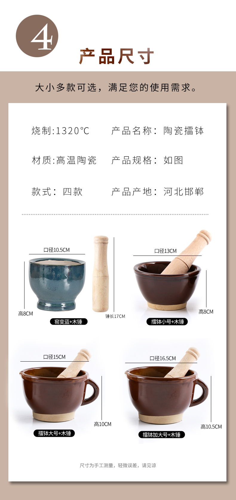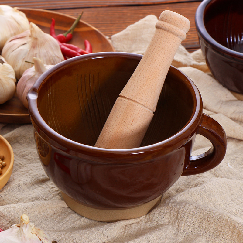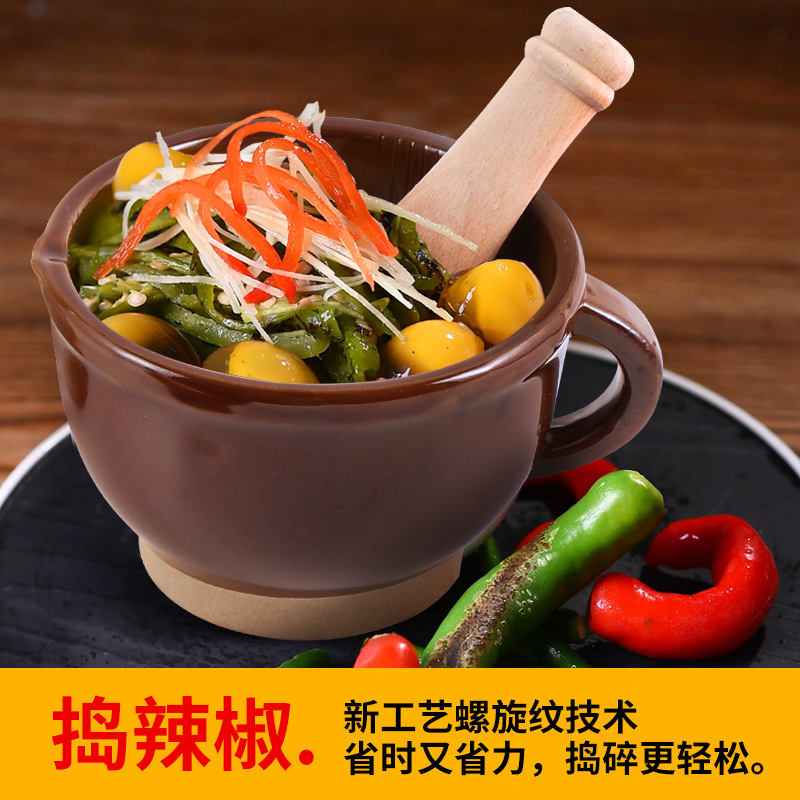 대형 마늘 박격포 분쇄기 마늘 박격포 가지 드럼 칠리 접시 호남 요리 마늘 두근 두근 두근 거친 도자기 Zhao Zhiwu
