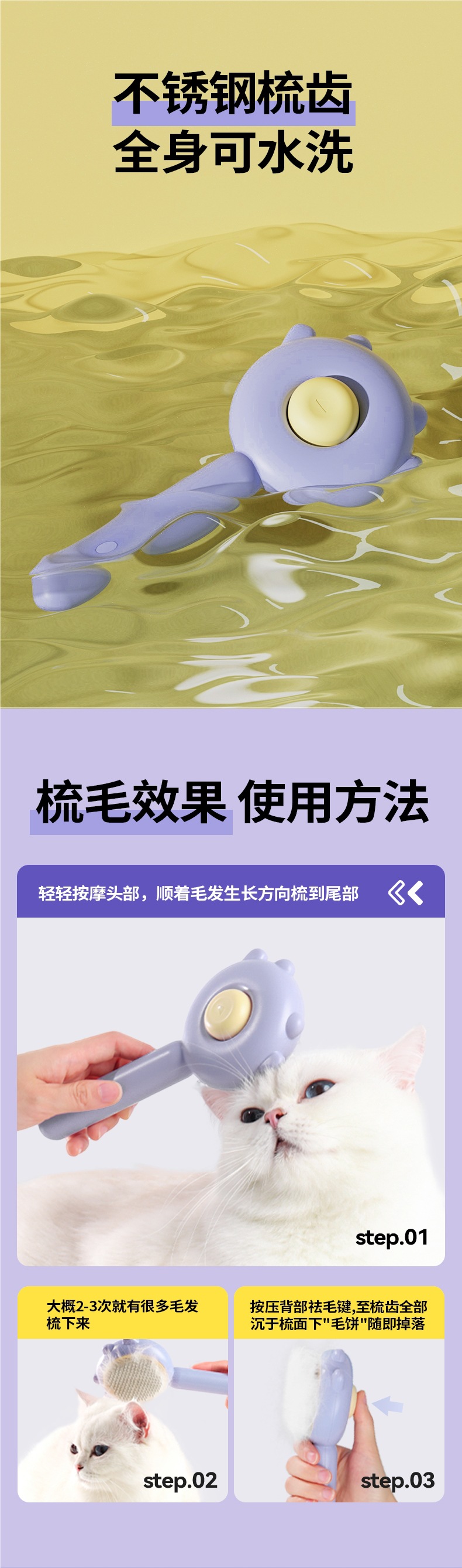 • 따뜻한 달걀 노른자 새끼 고양이 빗 (털 제거 마사지, 원클릭 셀프 클렌징)
