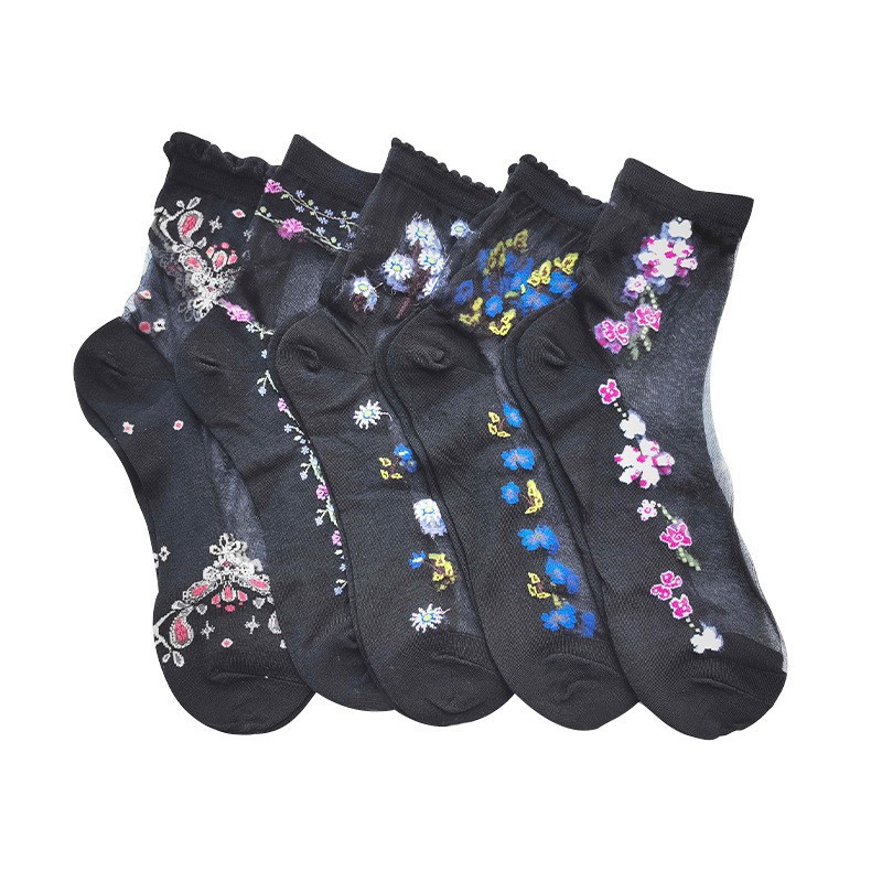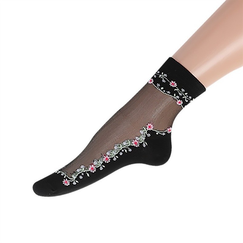 유럽과 미국의 폭발 여성 미드 배럴 크리스탈 스타킹 봄과 여름 얇은 자수 유리 실크 여성 양말 중년 및 노인 미끄럼 방지 양말