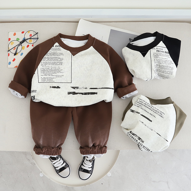 소년 세트 봄과 가을 2025 새로운 세련된 아기의 땀 어린이 바지 어린이 봄 투피스 세트