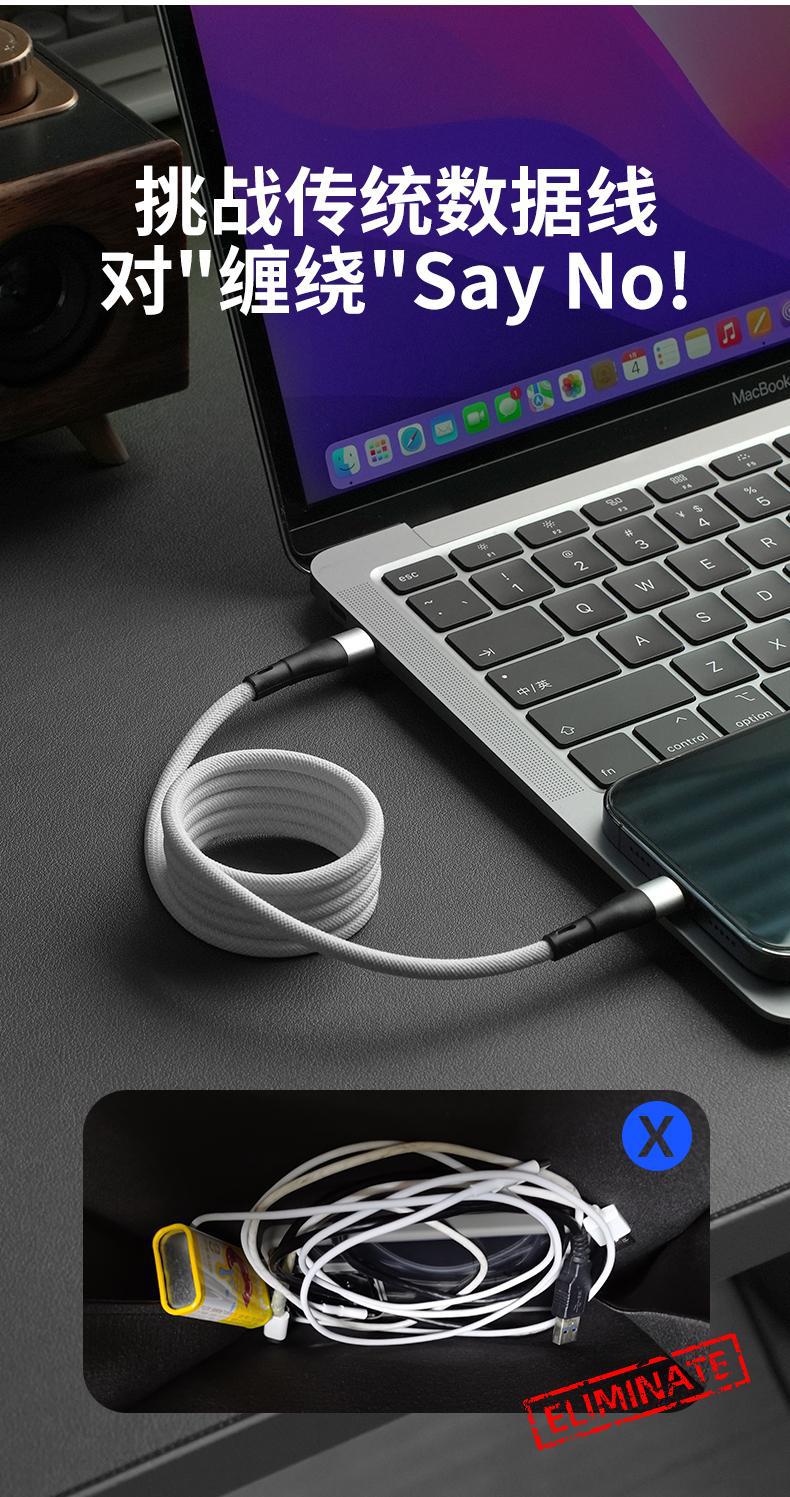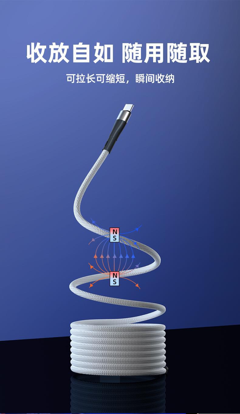 100W 빠른 충전 typec 데이터 라인 자기 흡수 스토리지 더블 타입 C 자동차 텔레스코픽 충전 라인 1 미터 1.5 미터 2 미터