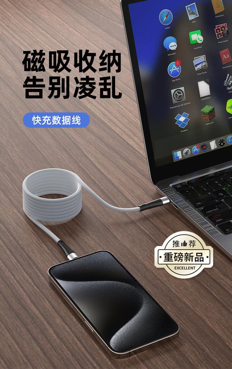 • [클래식 블랙] 듀얼 Type C 100W 고속 충전 자기 저장 데이터 케이블