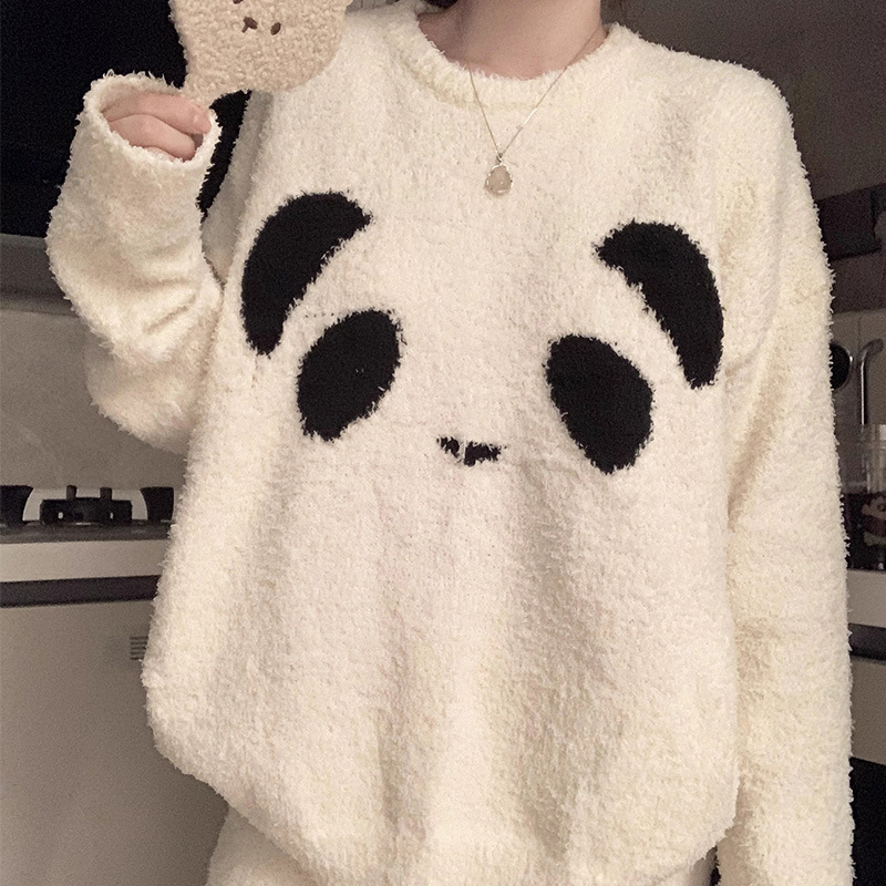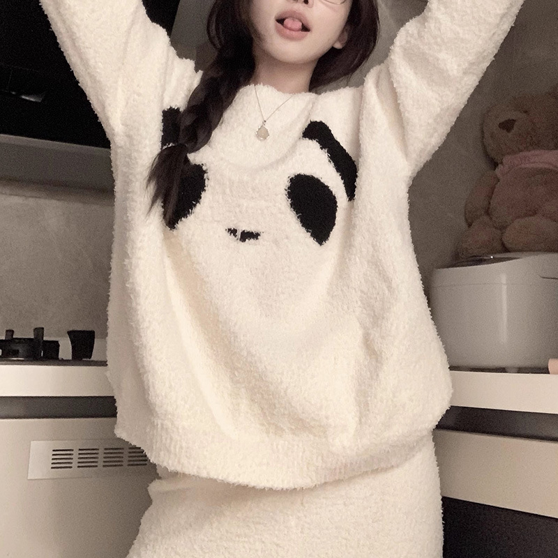 잠옷 여성의 새로운 겨울 반 벨벳 크루 넥 패딩 기모 부드러운 밀랍 게으른 세트 홈 의류 제조 업체 도매