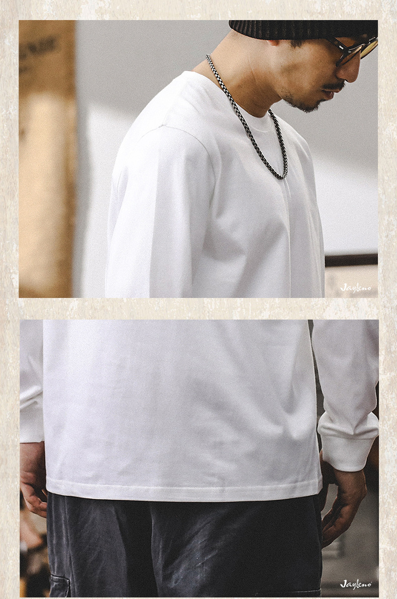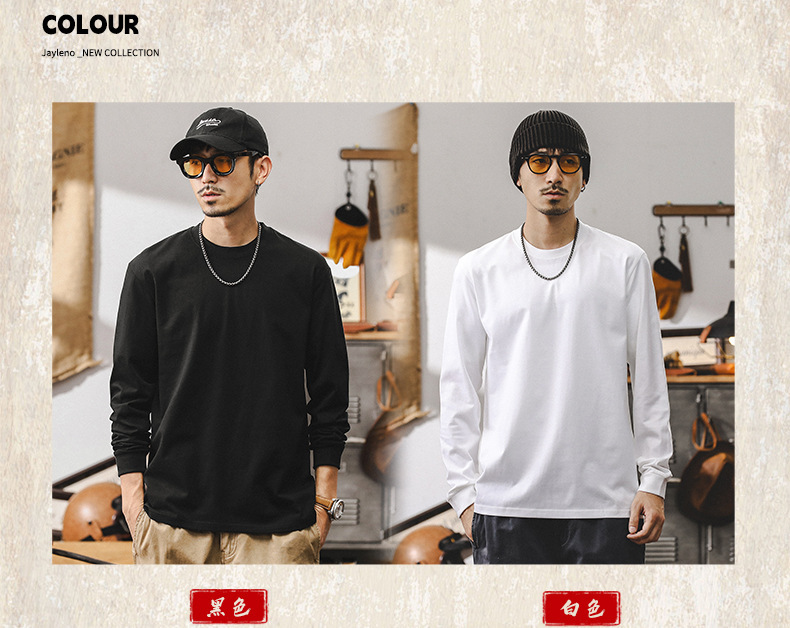 가을 남성용 아메리칸 트렌디 브랜드 스레드 긴팔 티셔츠 남성용 루즈하고 다재다능한 바닥 셔츠 캐주얼 탑 T