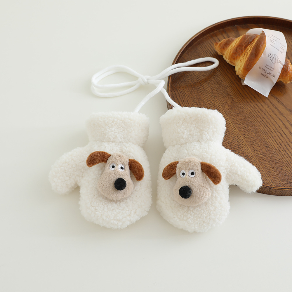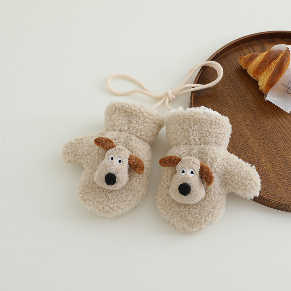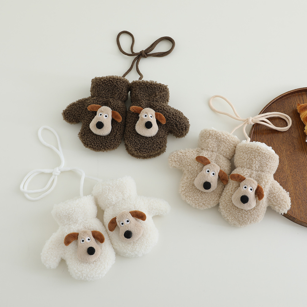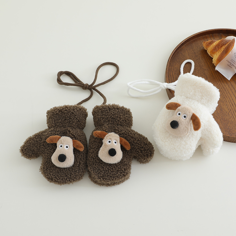 아기 장갑 겨울 따뜻한 봉제 두꺼운 한국 스타일 만화 강아지 아기 가방 손가락 승마 2024 새로운스토어 가기