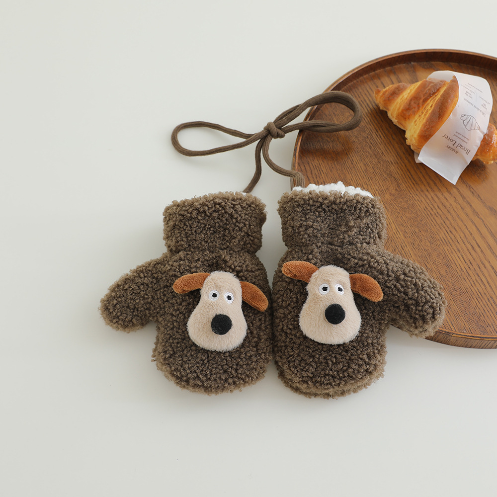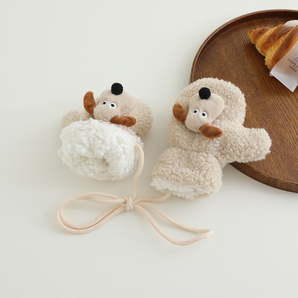 아기 장갑 겨울 따뜻한 봉제 두꺼운 한국 스타일 만화 강아지 아기 가방 손가락 승마 2024 새로운