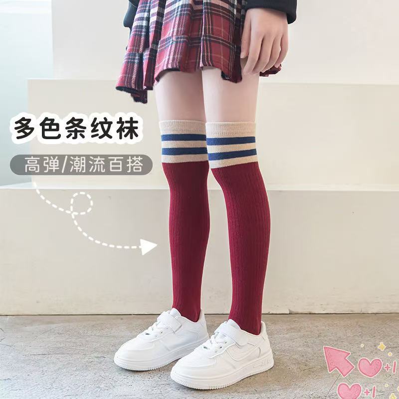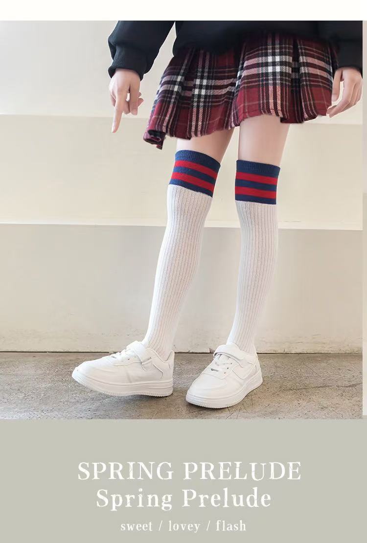 어린이 스타킹 봄 2 바 무릎 높은 양말 스포츠 양말 학생 양말 축구 양말 소년 소녀를위한 높은 양말