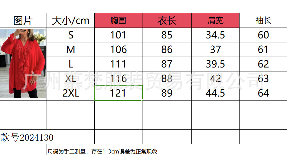 2024 AliExpress Amazon 독립 스테이션 유럽과 미국 새로운 V-넥 쉬폰 긴 소매 긴 셔츠 스팽이 스팽글 여성