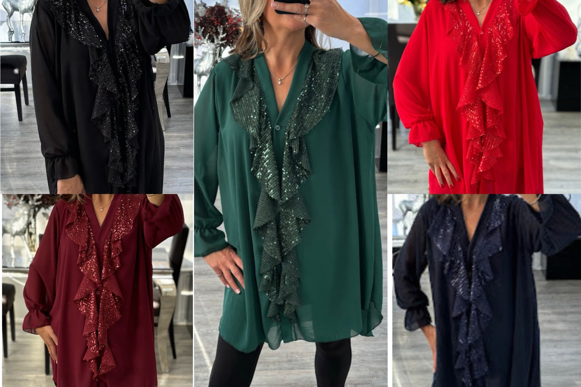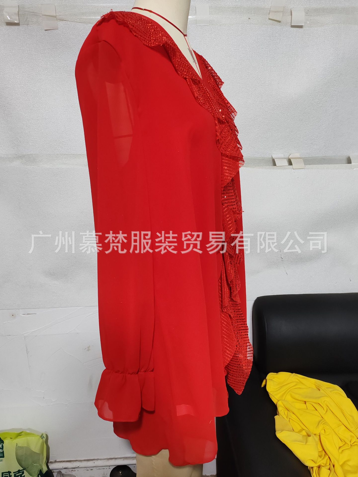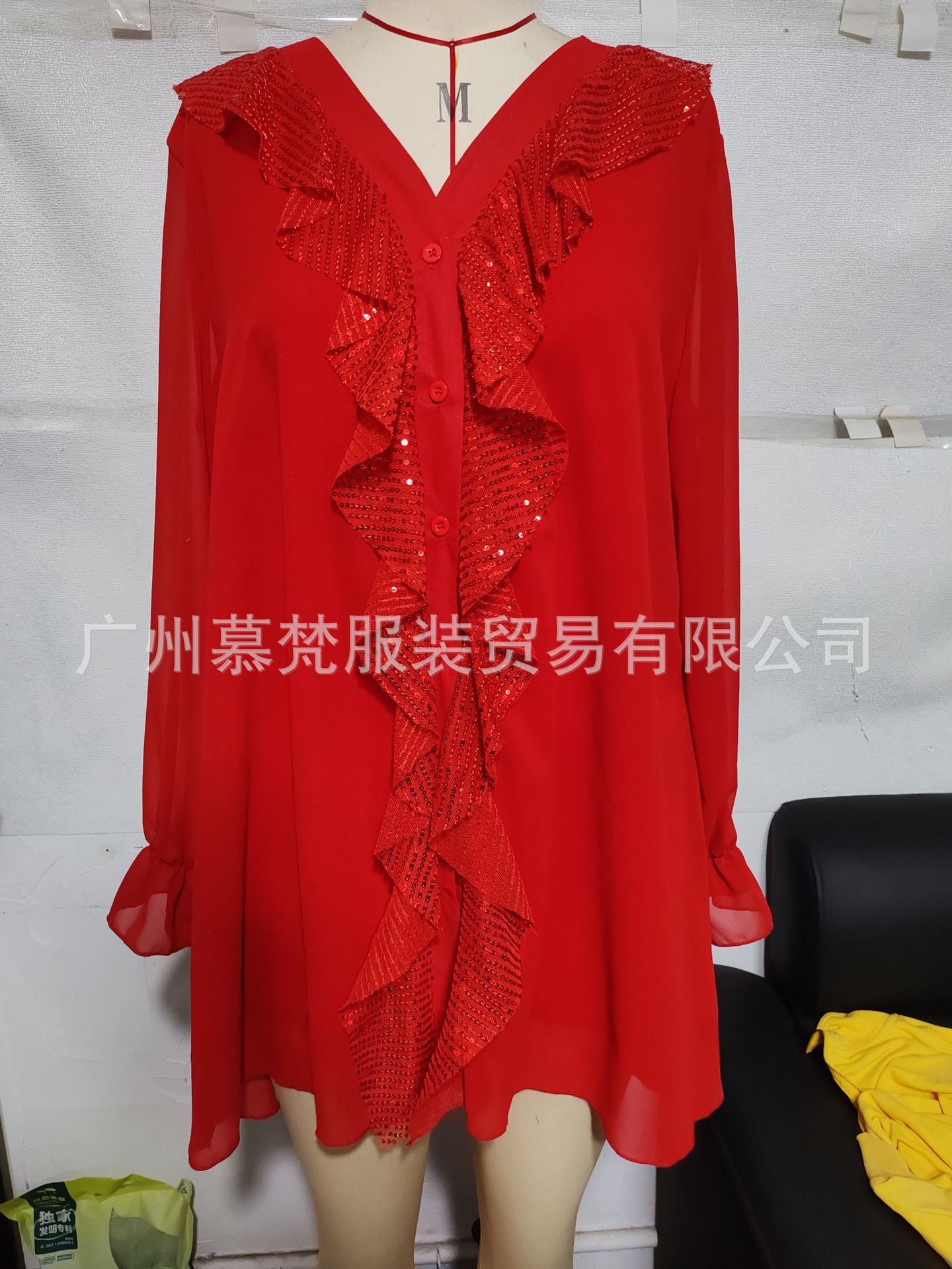 2024 AliExpress Amazon 독립 스테이션 유럽과 미국 새로운 V-넥 쉬폰 긴 소매 긴 셔츠 스팽이 스팽글 여성스토어 가기