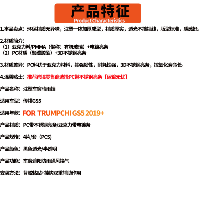 Chuanqi GS5 창 비 방패 태양 바이저 비 눈썹 GAC GS5 2019 윈도우 바이저에 적용 가능스토어 가기