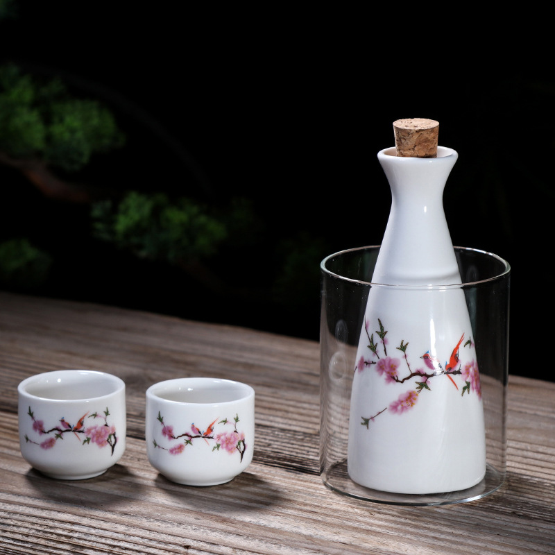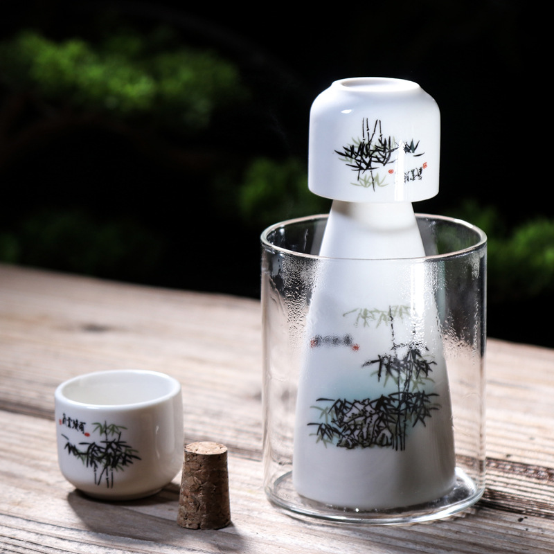 중간 정도의 뜨거운 두 개의 작은 엉덩이 플라스크 구식 모조 복고풍 스타일 와인 디스펜서 세라믹 가정용 화이트 와인 전통 따뜻한 다림질 세트스토어 가기