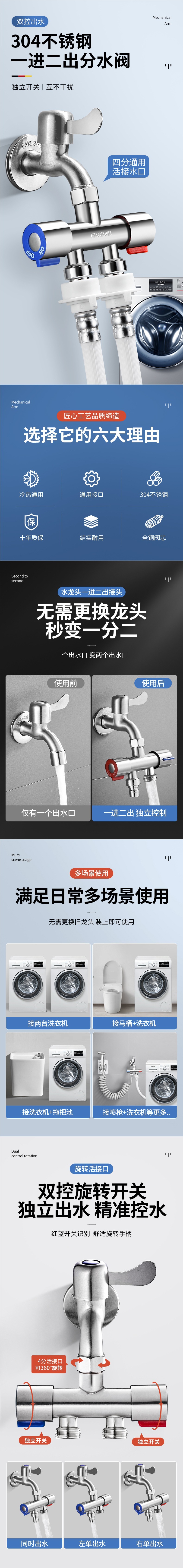 수도꼭지 일대일 2 커넥터 수도관 세탁기 스위치 일대일 투 아웃 전환기 다기능 가구 편의