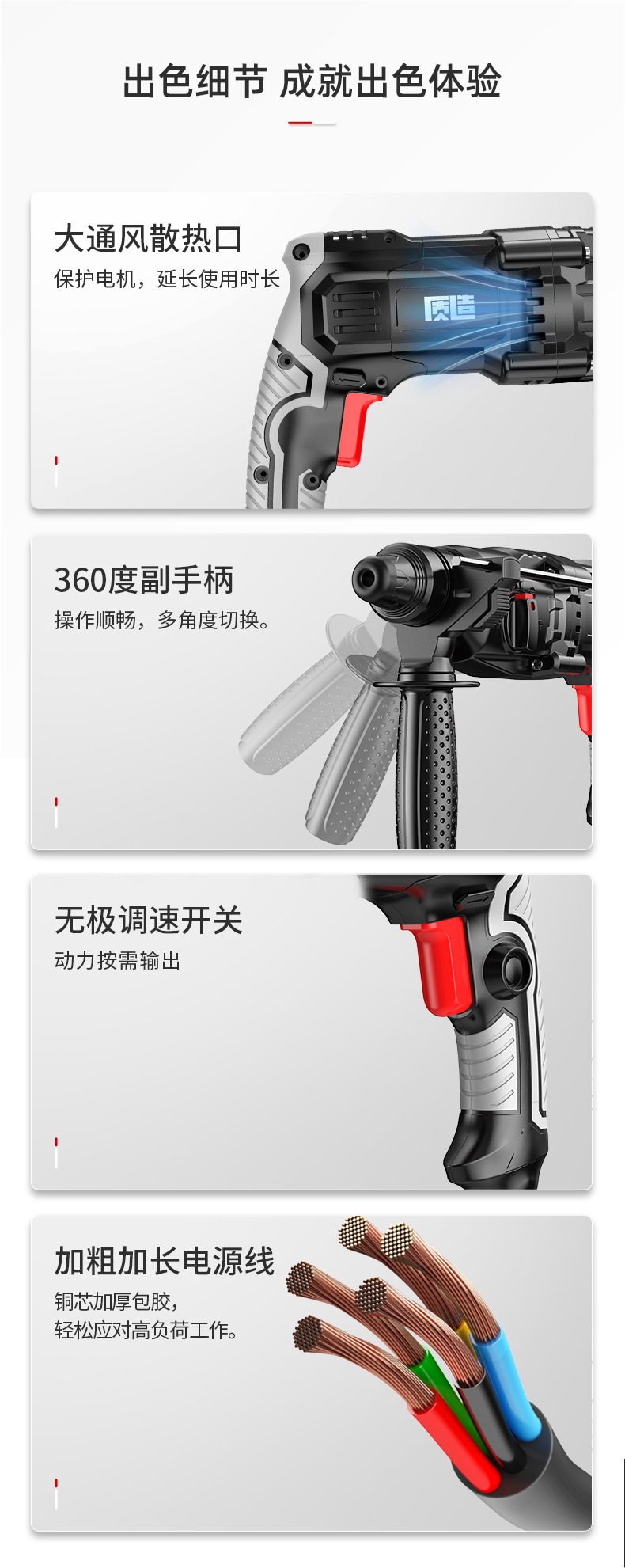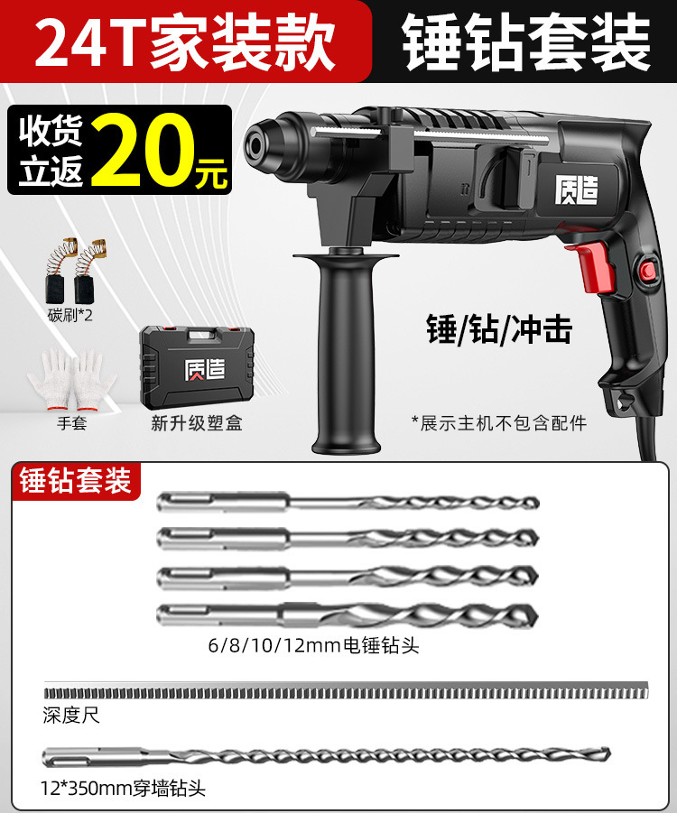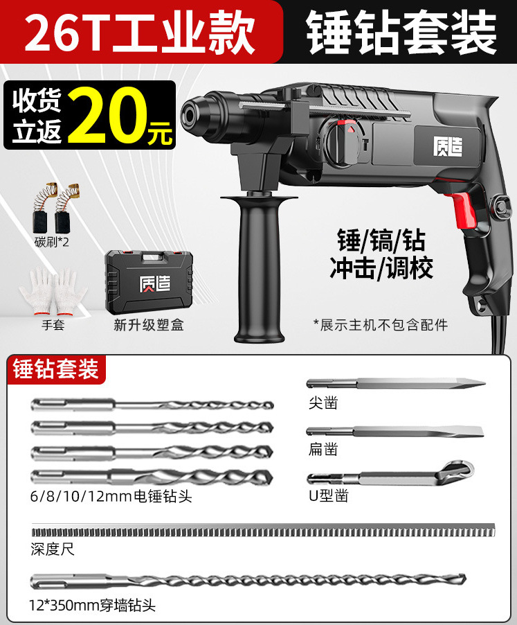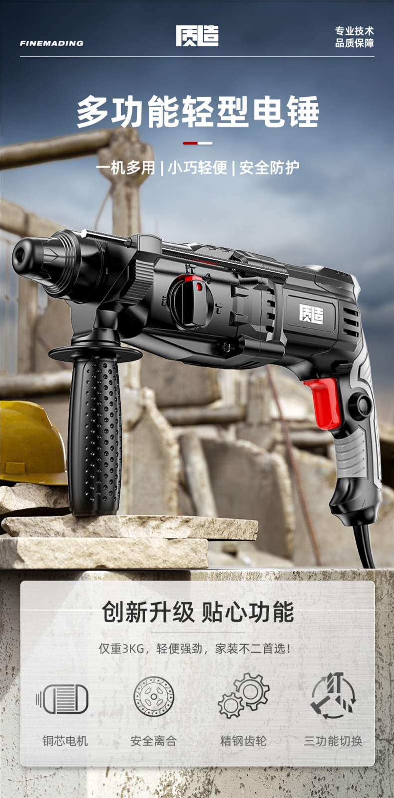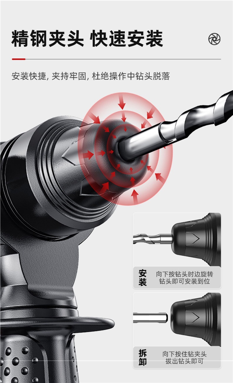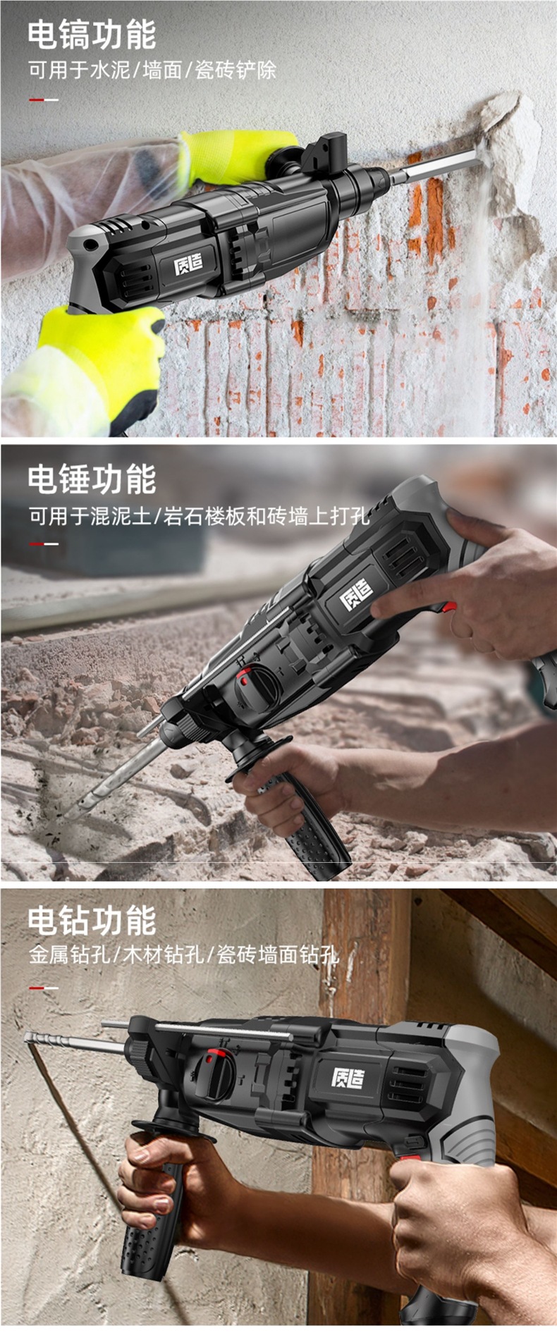 가벼운 전기 해머 전기 픽 임팩트 드릴 이중 목적 3 가지 고성능 가정용 콘크리트 벽 구멍 다기능 전기 해머 시계
