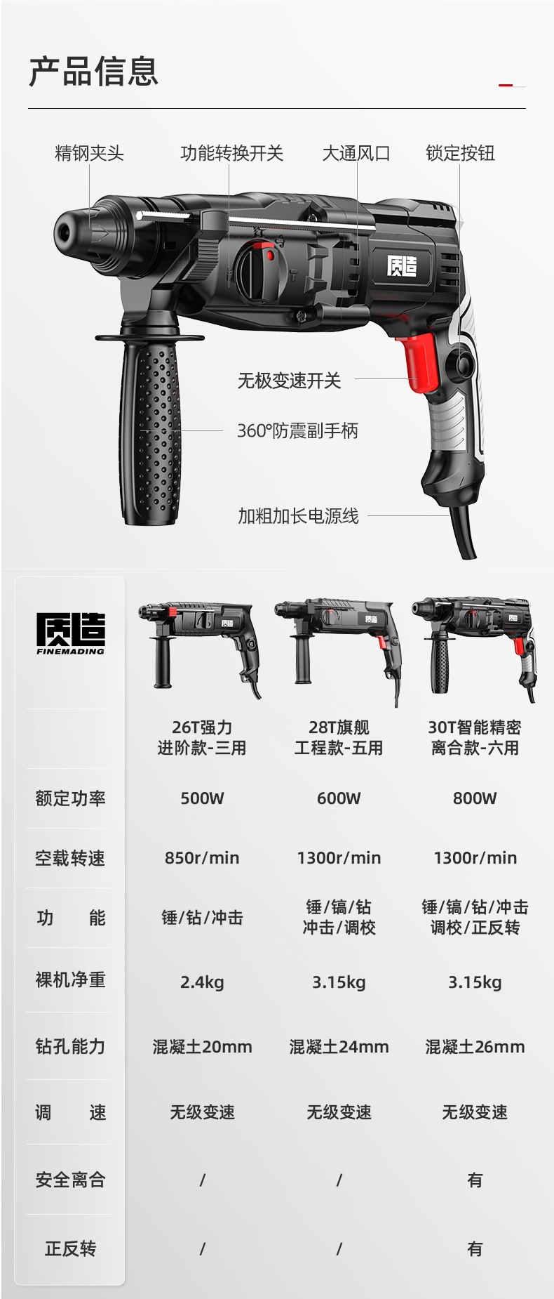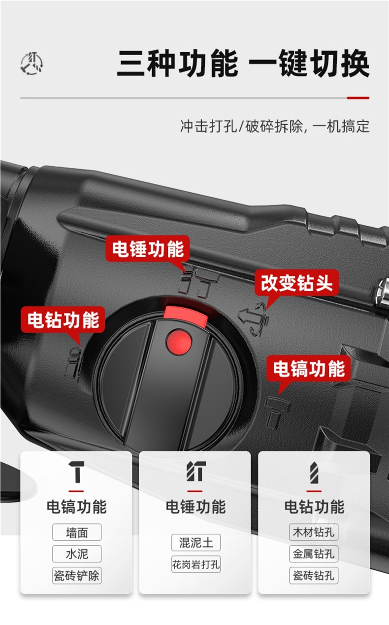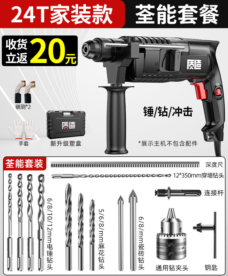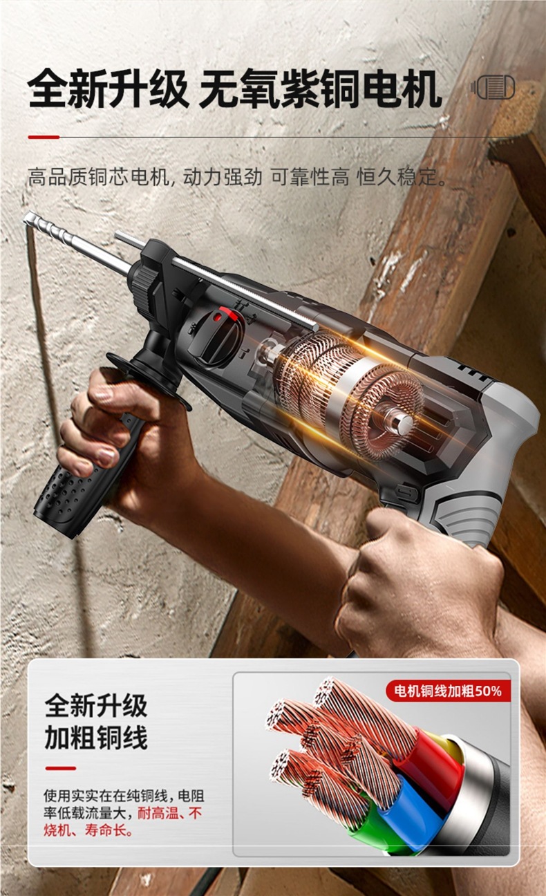 가벼운 전기 해머 전기 픽 임팩트 드릴 이중 목적 3 가지 고성능 가정용 콘크리트 벽 구멍 다기능 전기 해머 시계스토어 가기