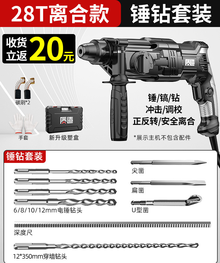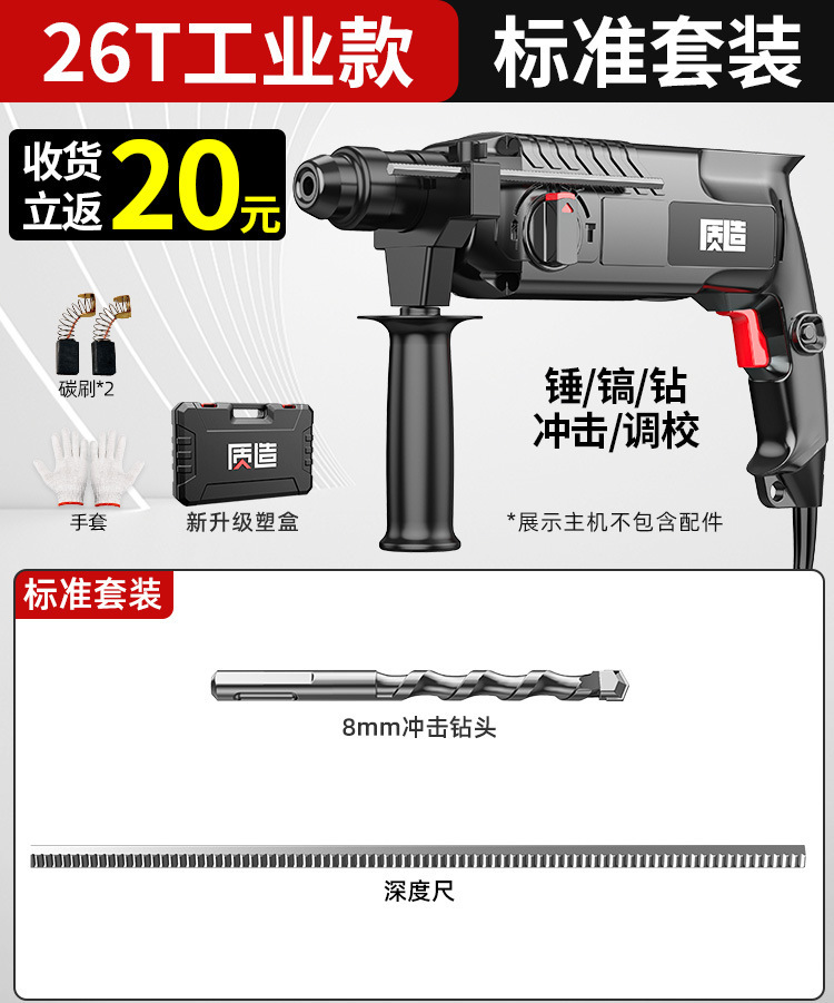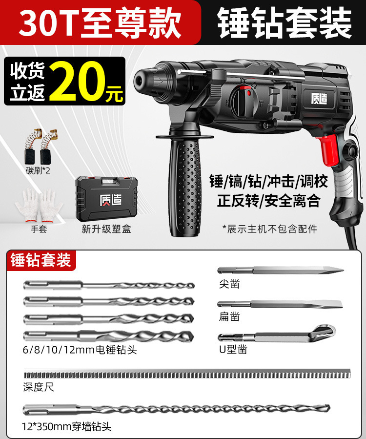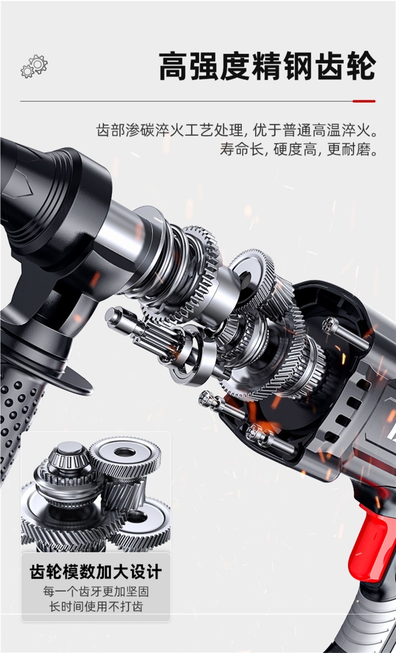 가벼운 전기 해머 전기 픽 임팩트 드릴 이중 목적 3 가지 고성능 가정용 콘크리트 벽 구멍 다기능 전기 해머 시계스토어 가기