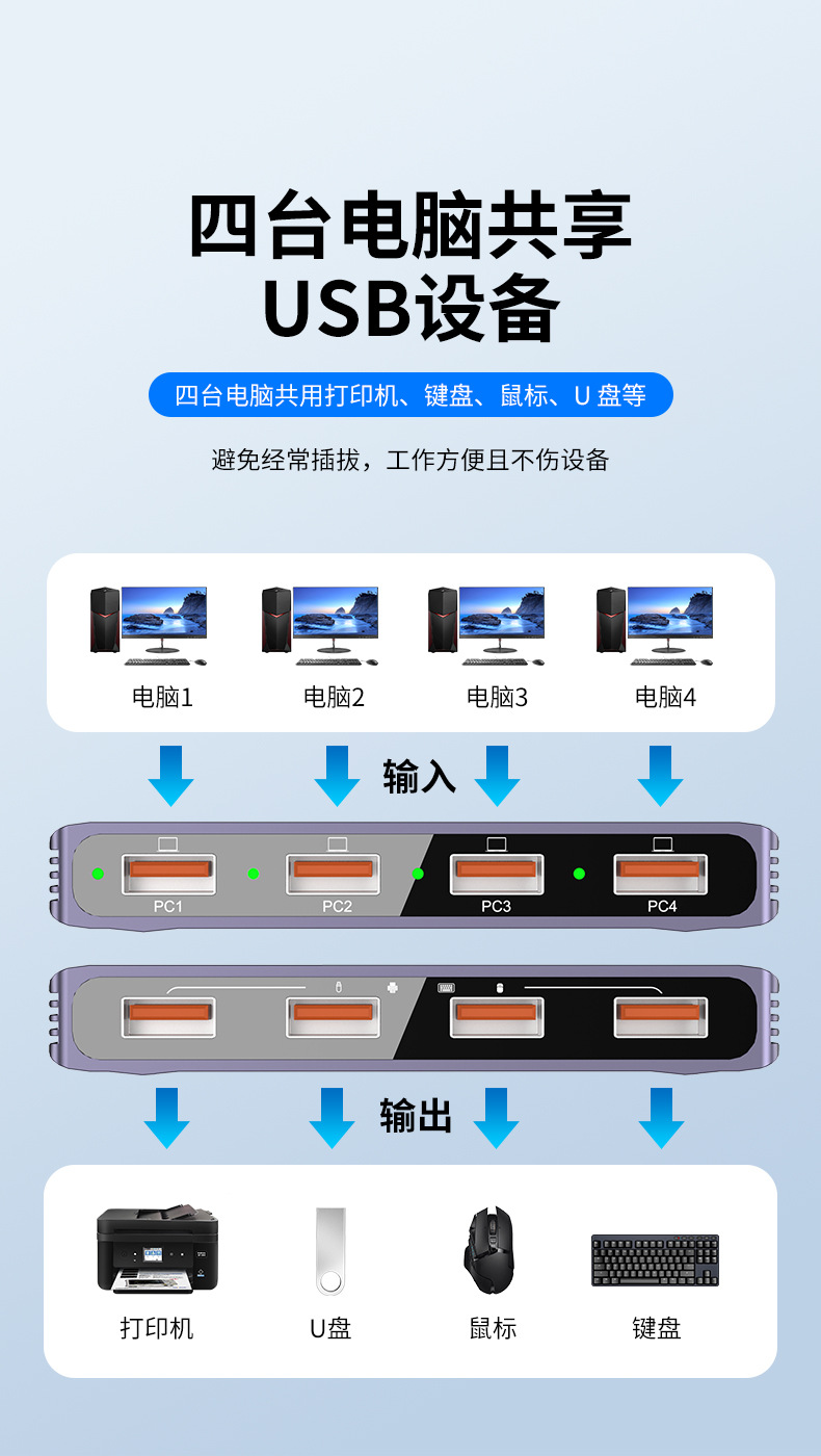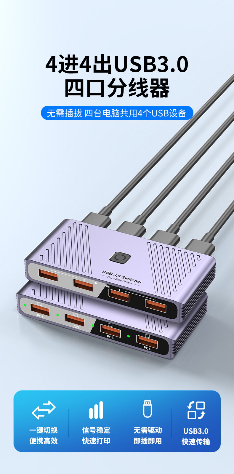 USB3.0 프린터 공유기 컴퓨터 스위치 4 인 4 포트 스플리터 usb 확장기 변환기