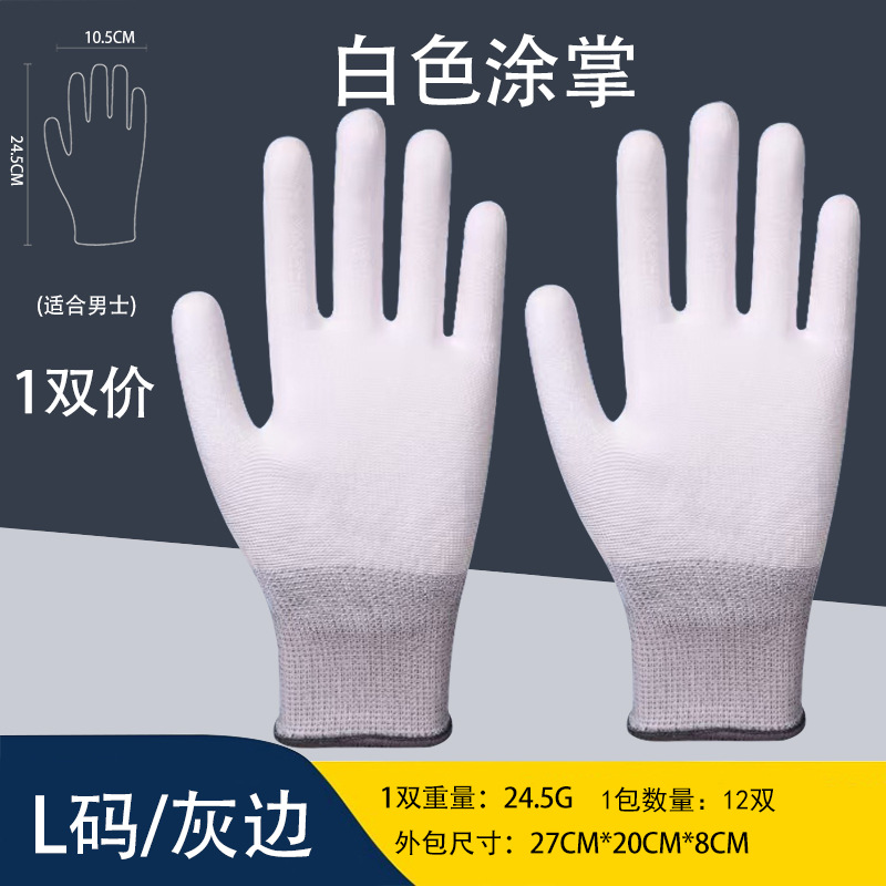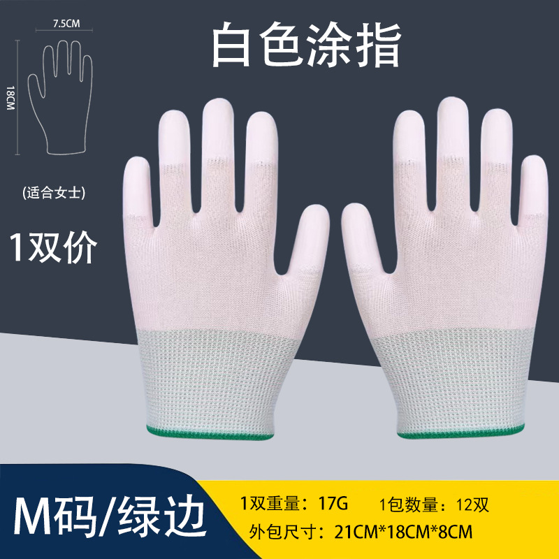 PU涂指手套加厚白色尼龙涂掌手套电子无尘防静电碳纤维涂胶手套