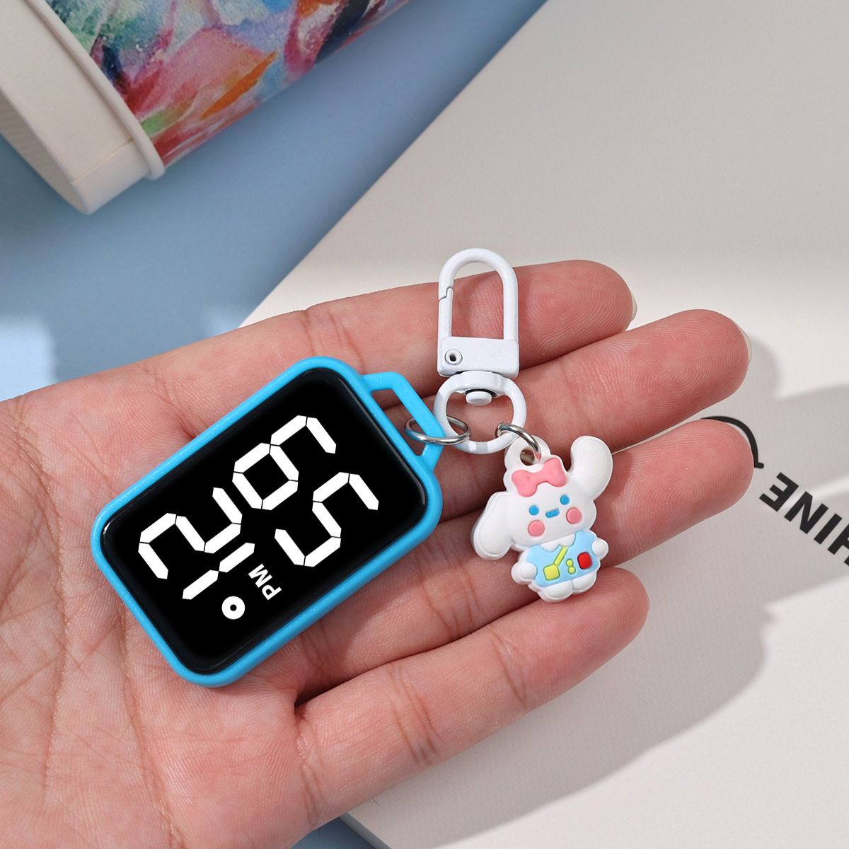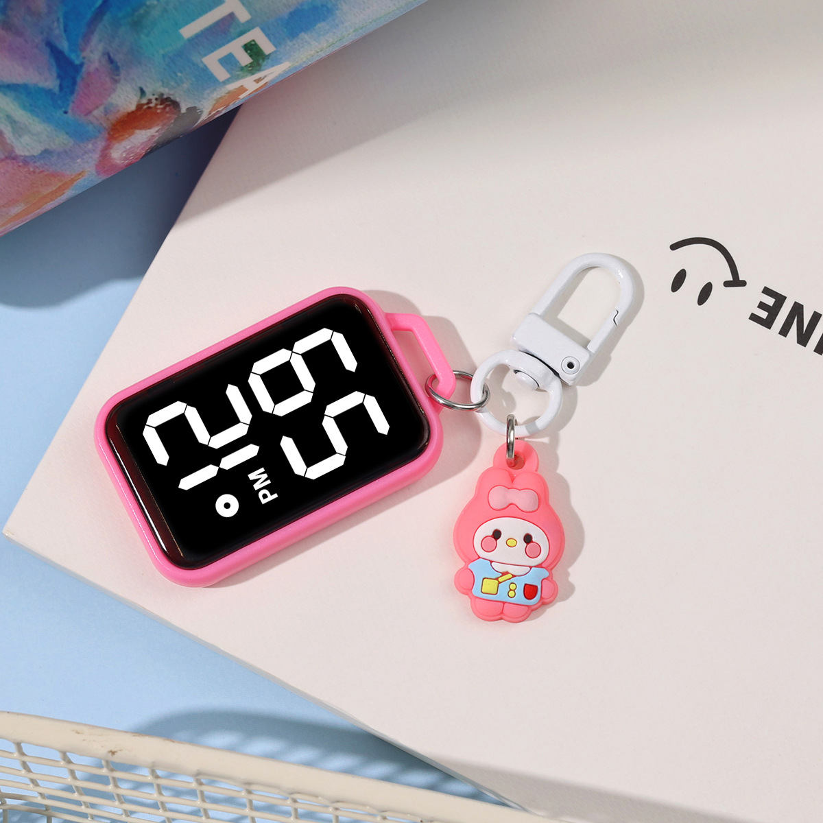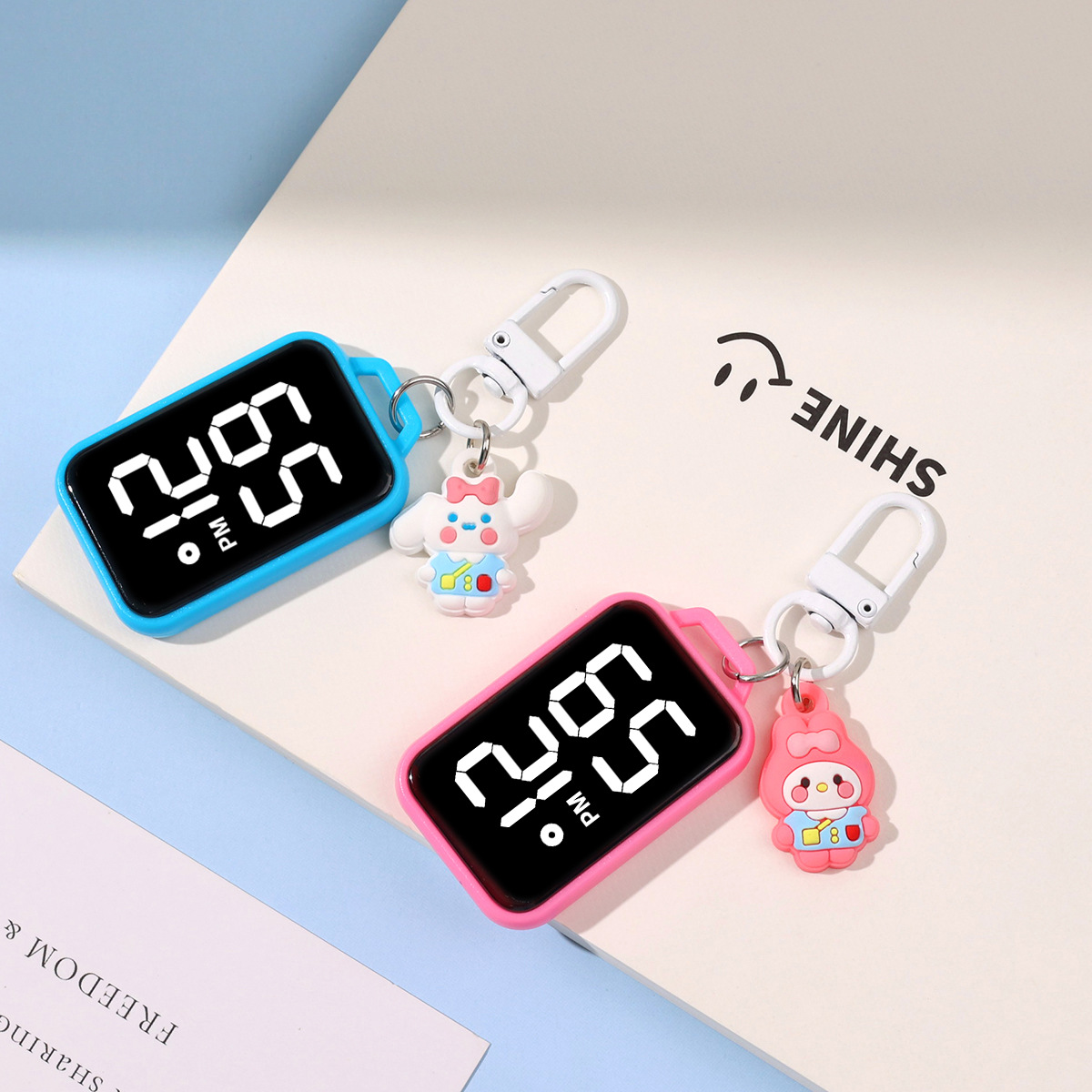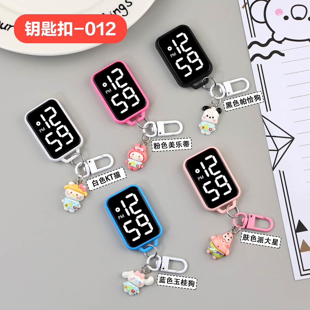 새로운 만화 대형 스크린 디스플레이 작은 교수형 시계 창조적 인 귀여운 작은 키 체인 시계 학생 시험 전자 시계