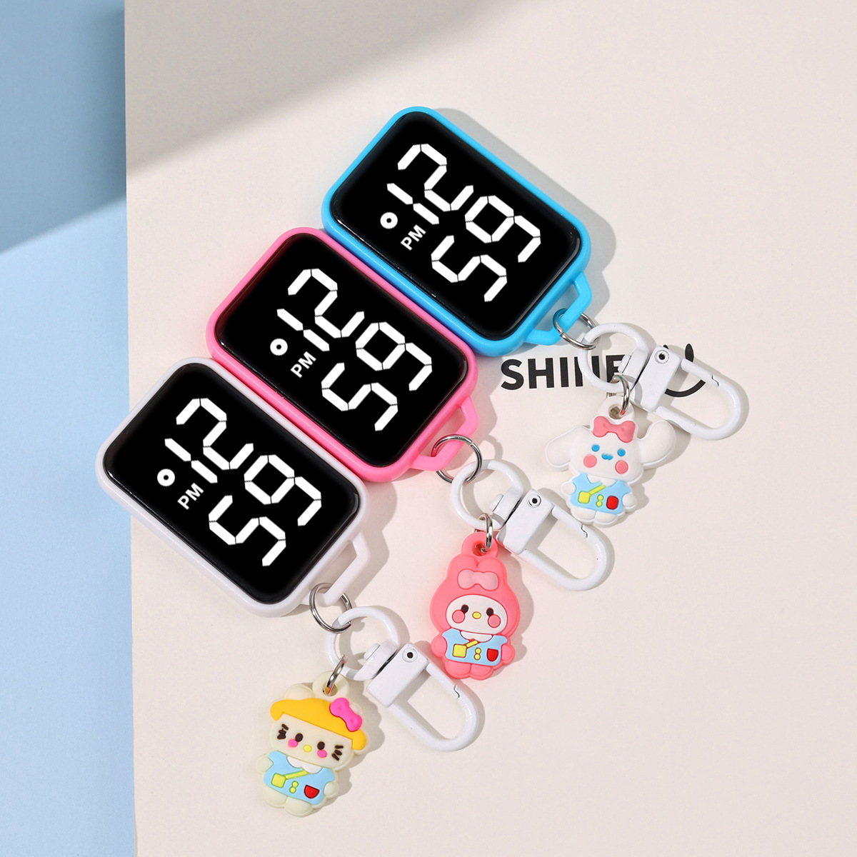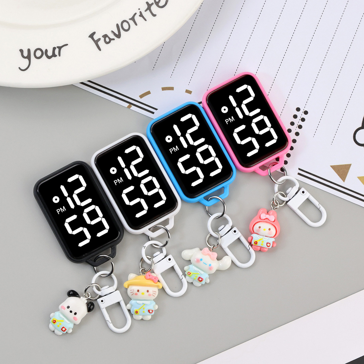 새로운 만화 대형 스크린 디스플레이 작은 교수형 시계 창조적 인 귀여운 작은 키 체인 시계 학생 시험 전자 시계스토어 가기