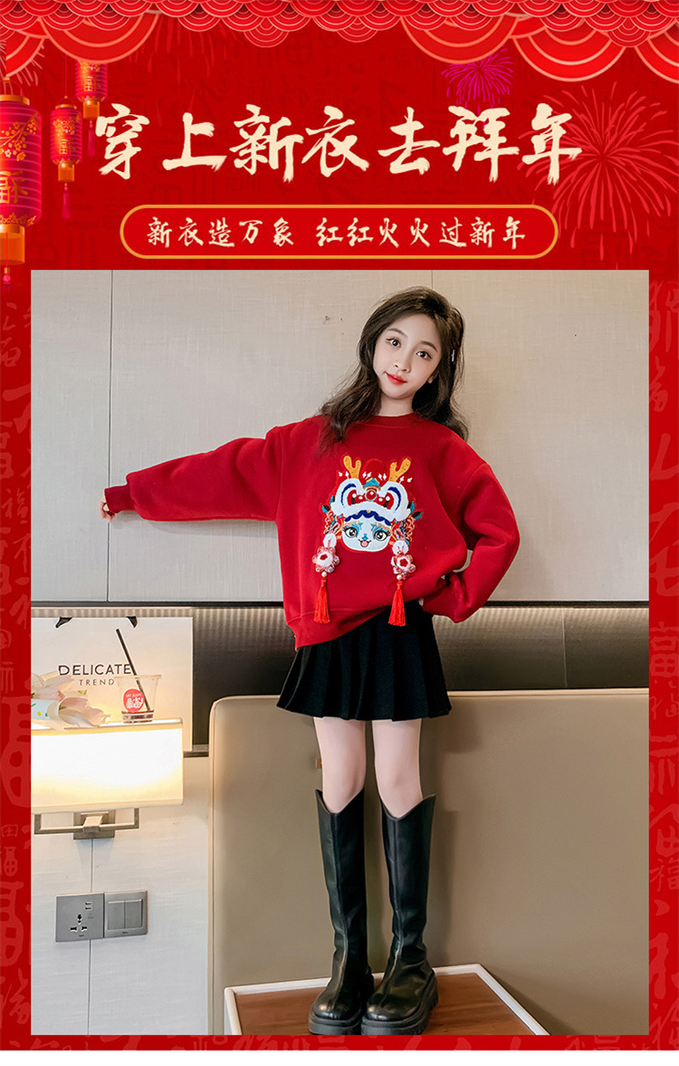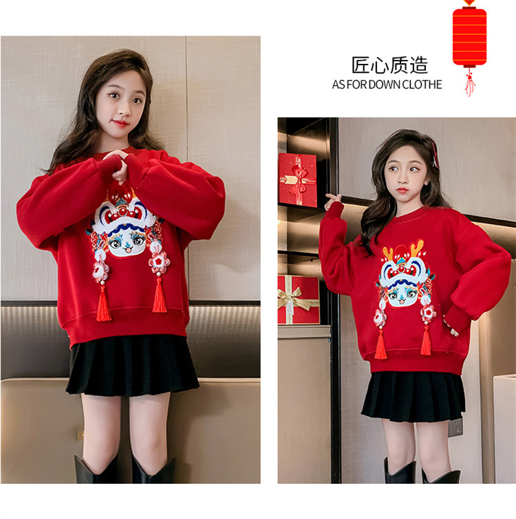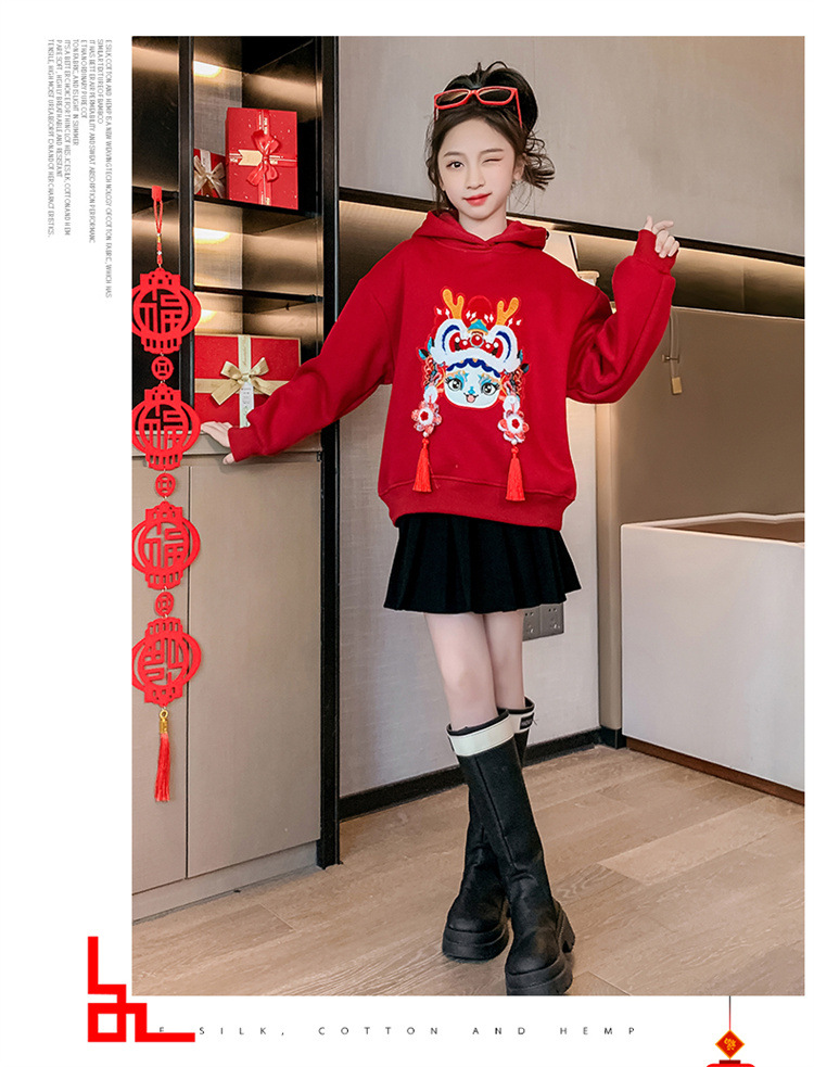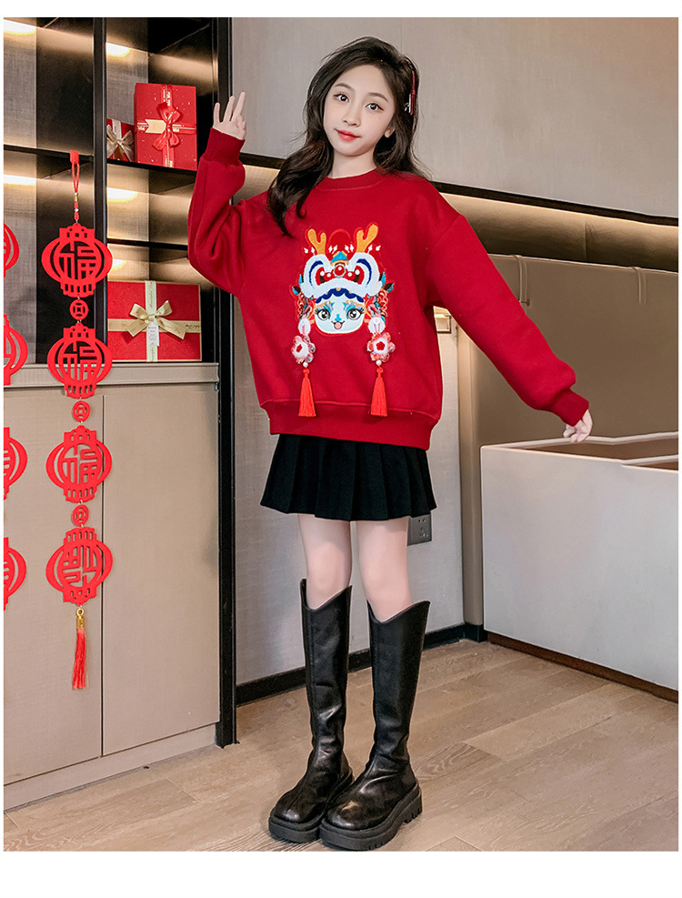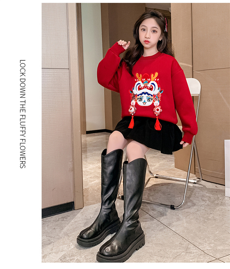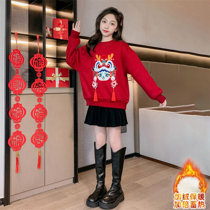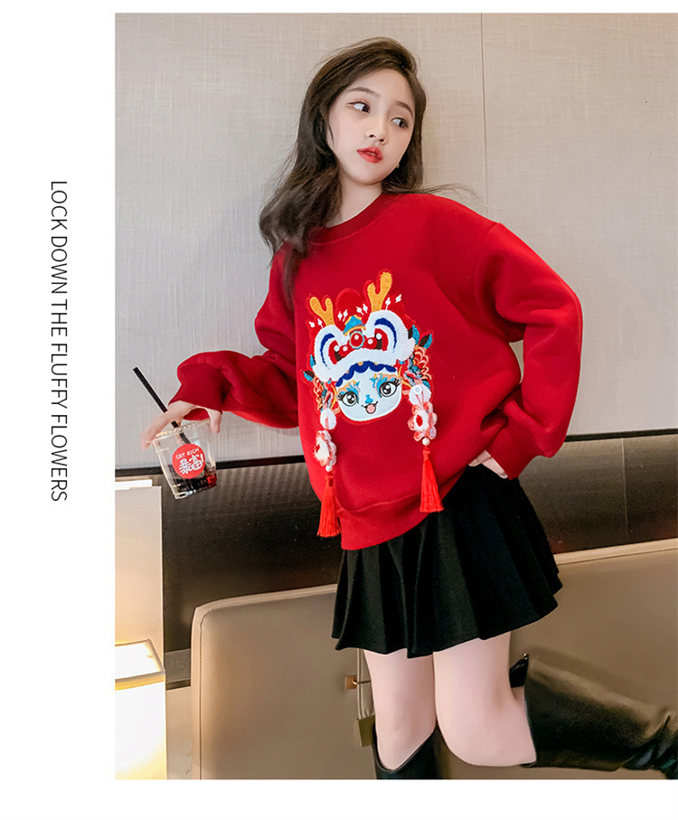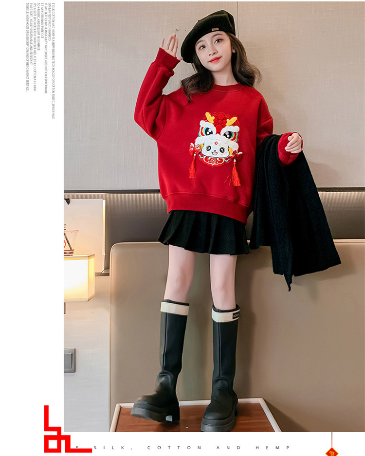 수놓은 소녀의 기모 땀 겨울 코트 축제 새해 붉은 크루 넥 땀 12 세 소녀 생활 년 옷 겨울스토어 가기