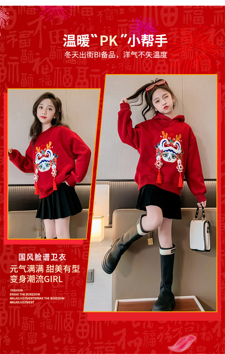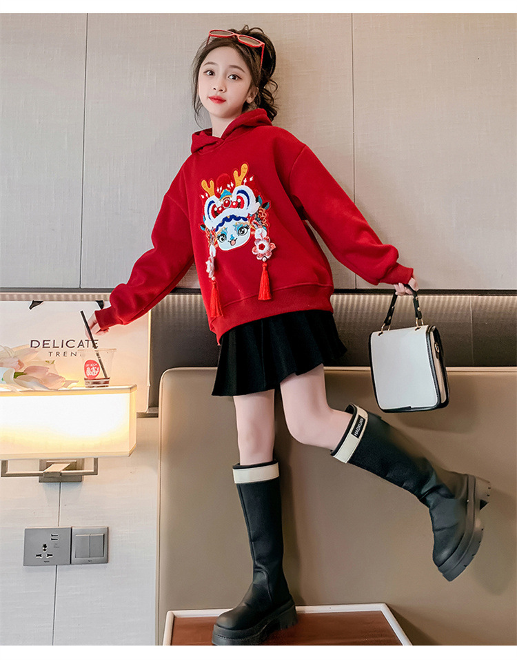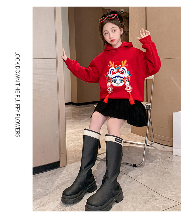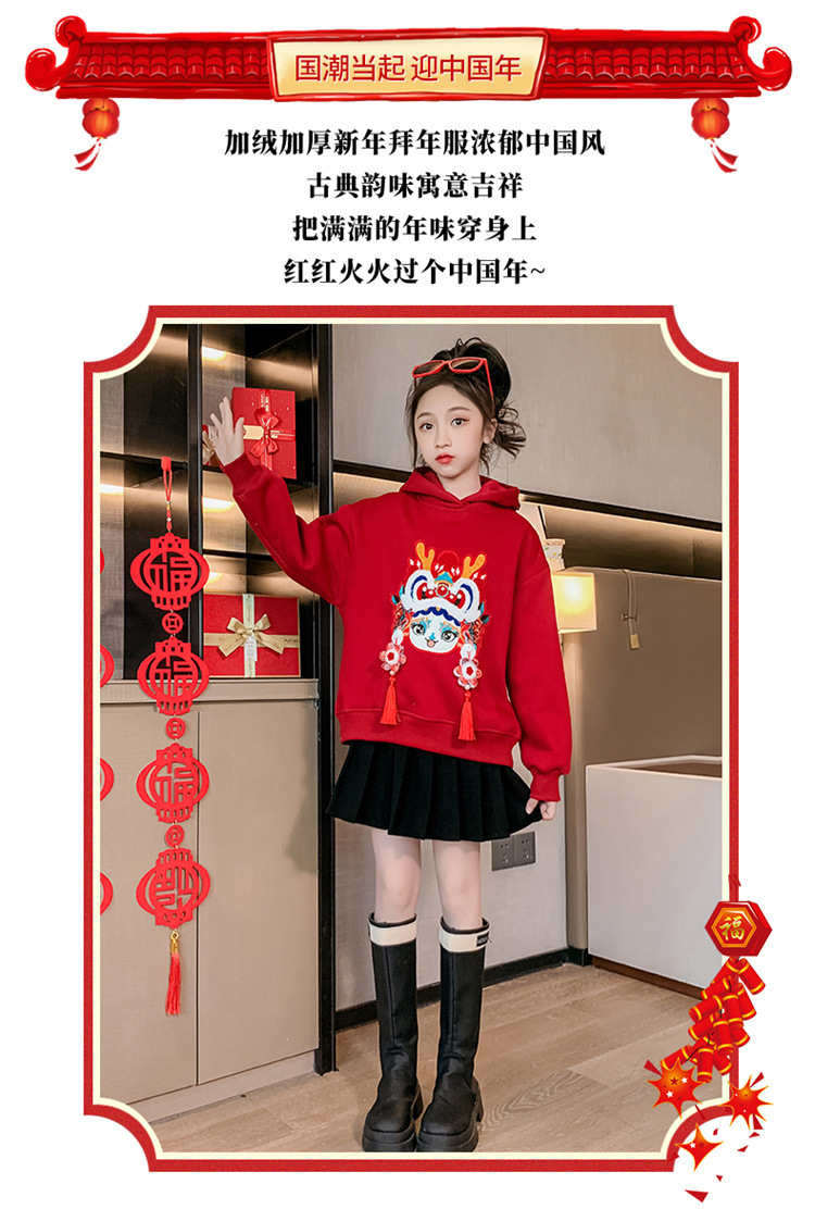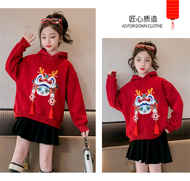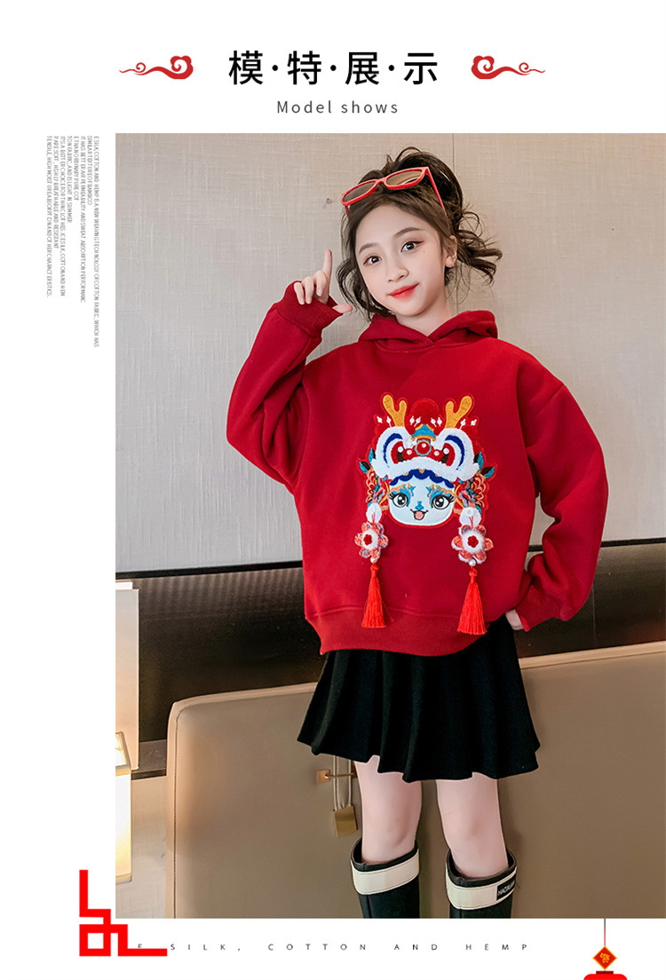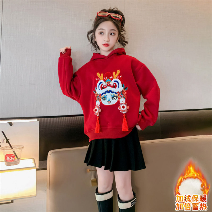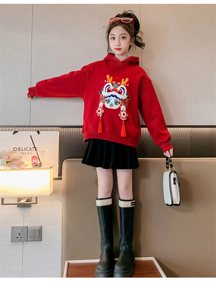 수놓은 소녀의 기모 땀 겨울 코트 축제 새해 붉은 크루 넥 땀 12 세 소녀 생활 년 옷 겨울스토어 가기
