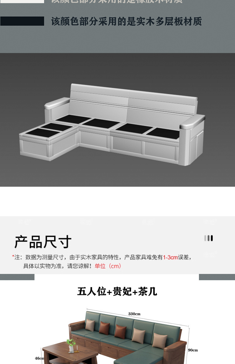 현대 중국 스타일 솔리드 우드 소파 거실 저장 코너 작은 아파트 이중 사용 기술 천 상자 오크 Guifei 가구