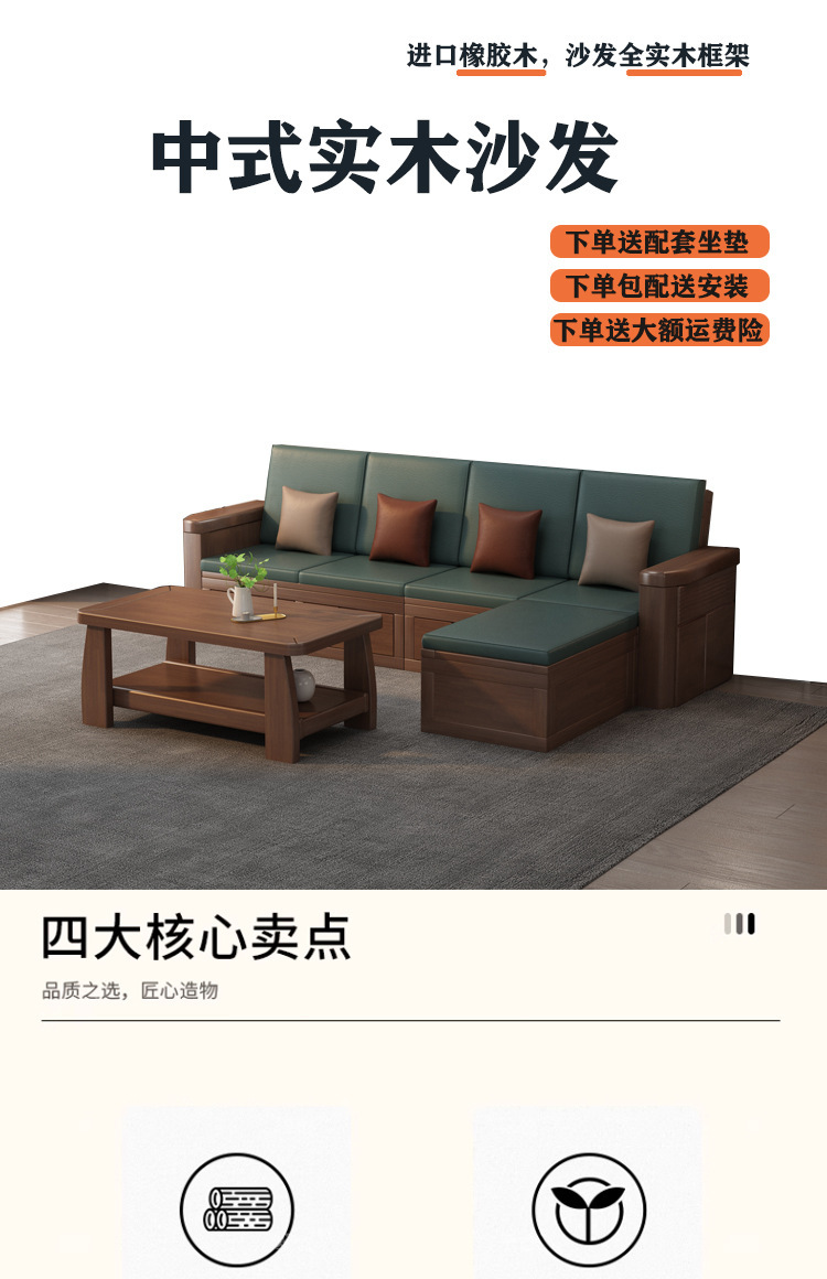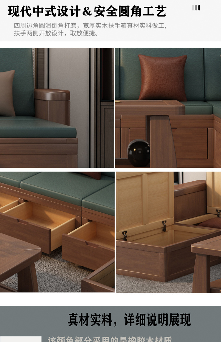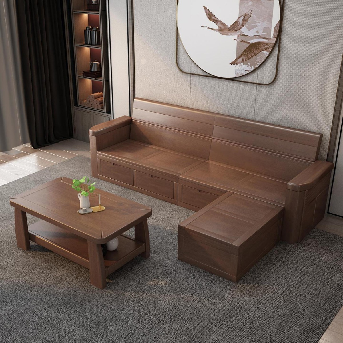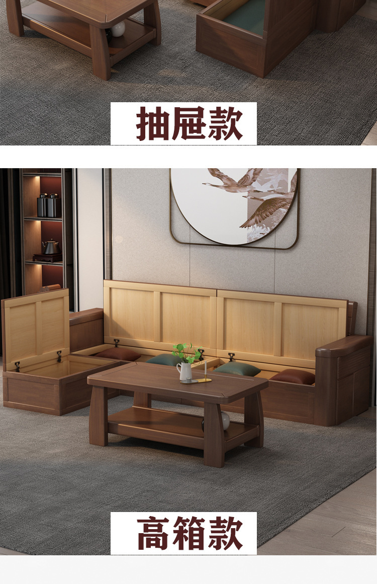 현대 중국 스타일 솔리드 우드 소파 거실 저장 코너 작은 아파트 이중 사용 기술 천 상자 오크 Guifei 가구스토어 가기