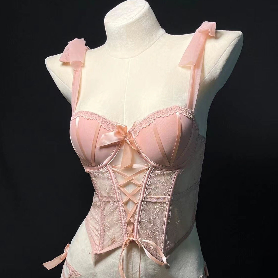 여름 새로운 섹시한 속옷 여성의 작은 가슴 모임 핑크 달콤한 레이스 피쉬 뼈 조끼 외출스토어 가기