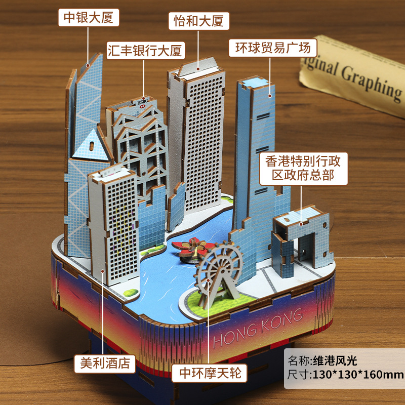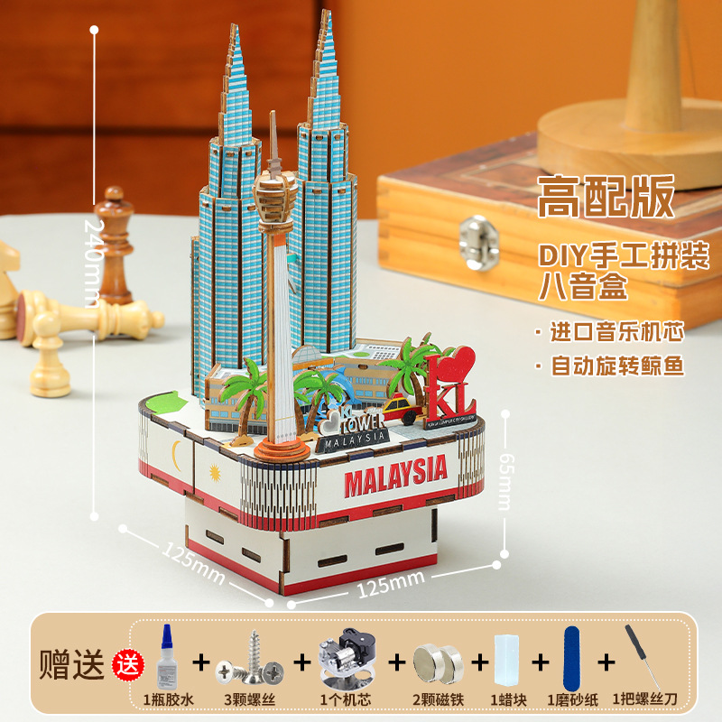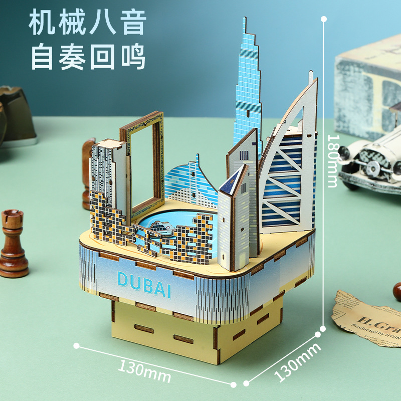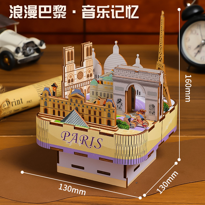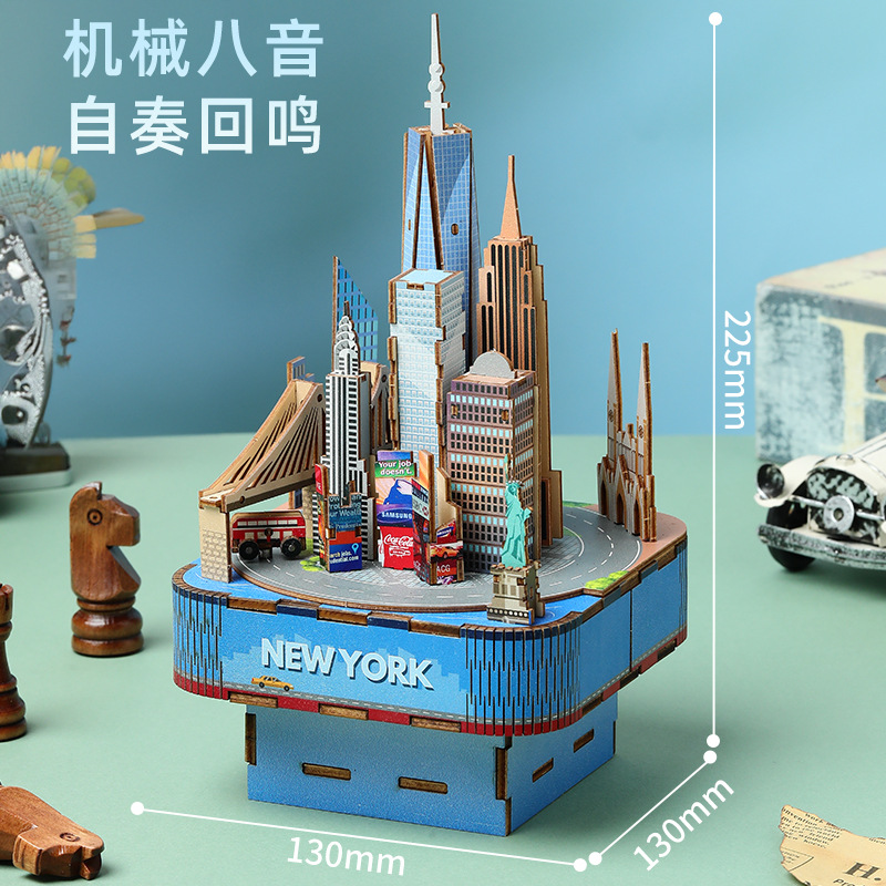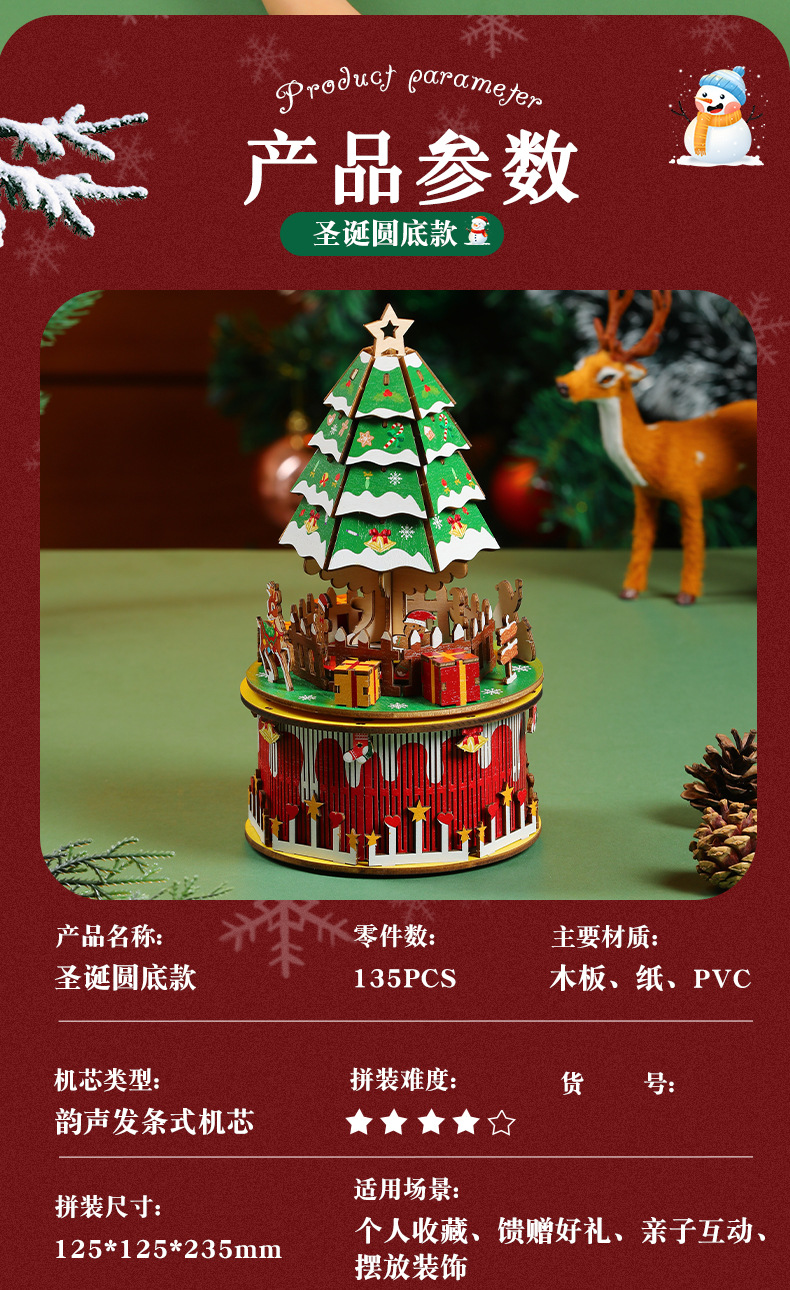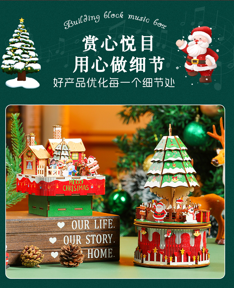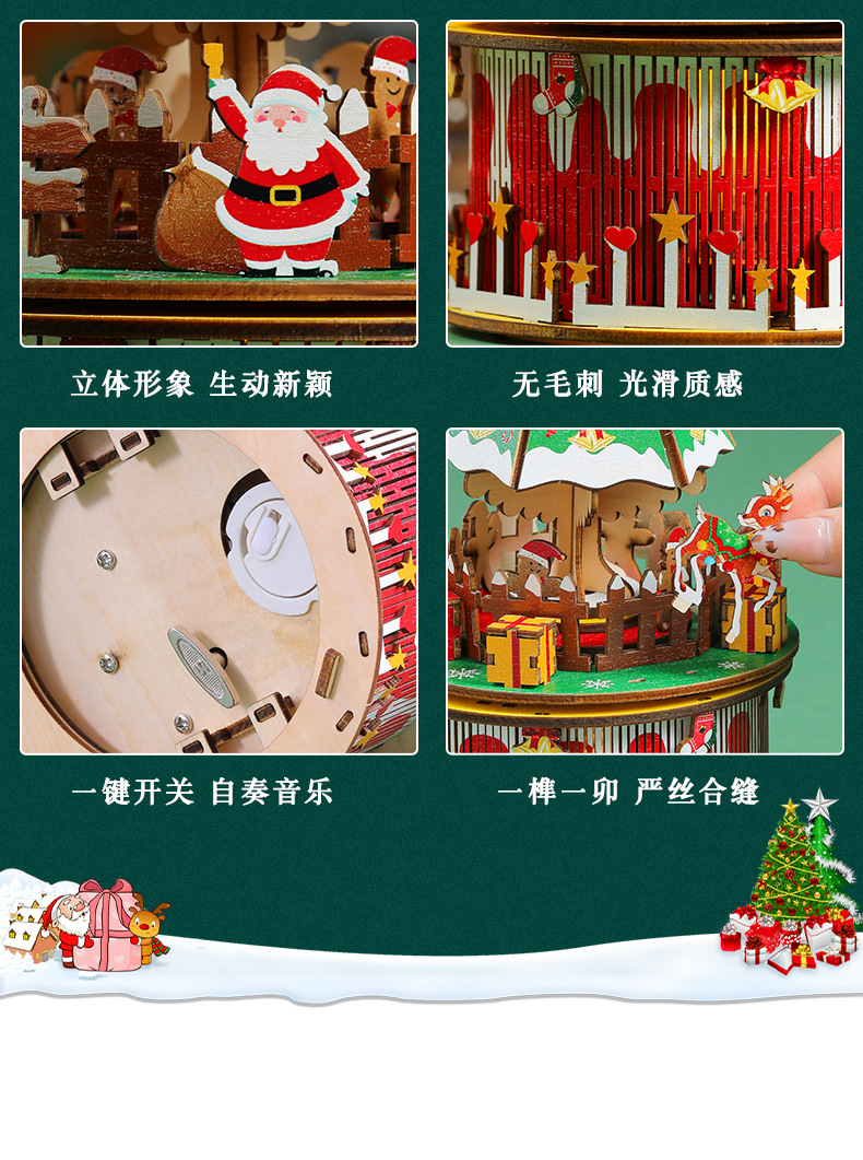 나무 퍼즐 뮤직 박스 크리스마스 캐빈 3D 수제 미니 모델 장식 선물 국경 퍼즐 장난감스토어 가기