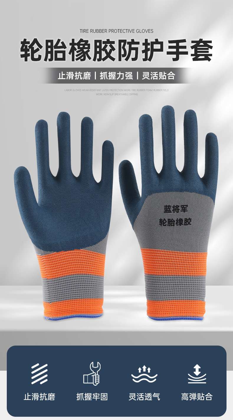 타이어 고무 미끄럼 방지 내마모성 노동 보호 장갑 건설 현장 근로자 손 보호 장갑 도매 취급스토어 가기
