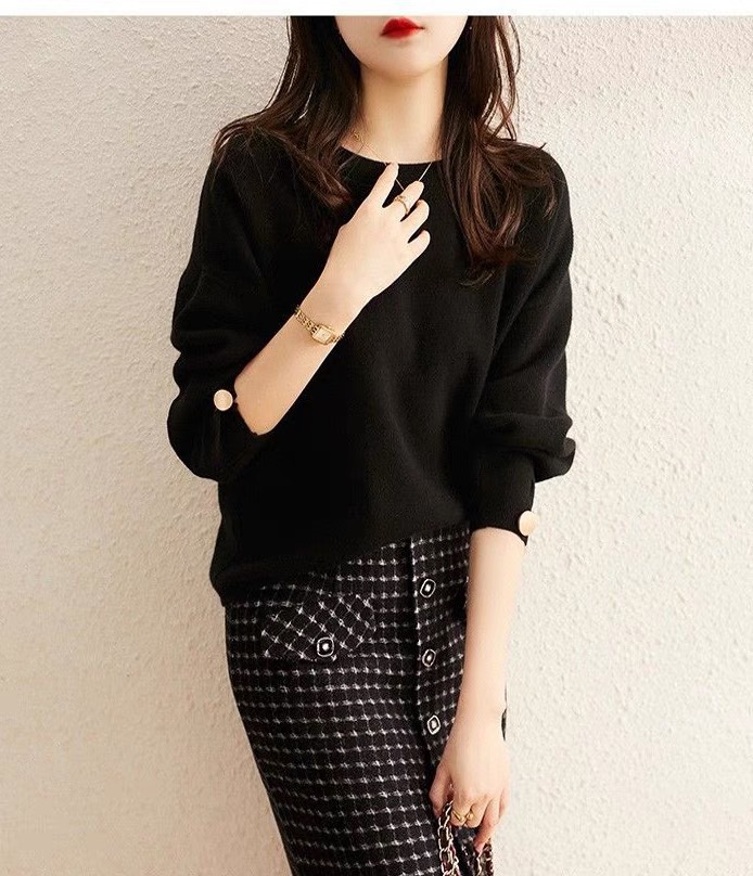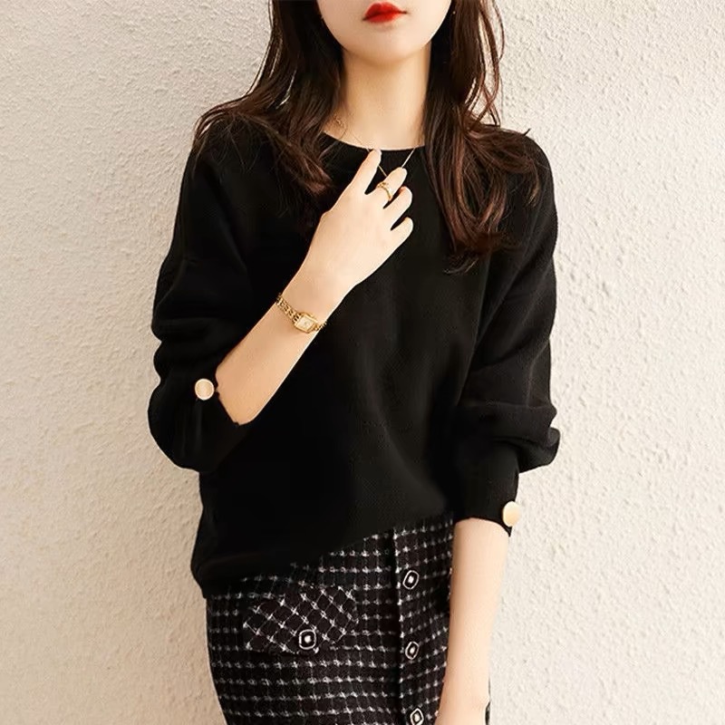 가을과 겨울 양모 스웨터 니트 라운드 넥 루즈 탑 2024 새로운 패션 서양식 단색 긴 소매 스웨터 여성용 세트스토어 가기