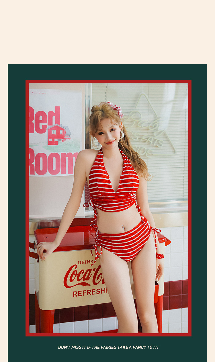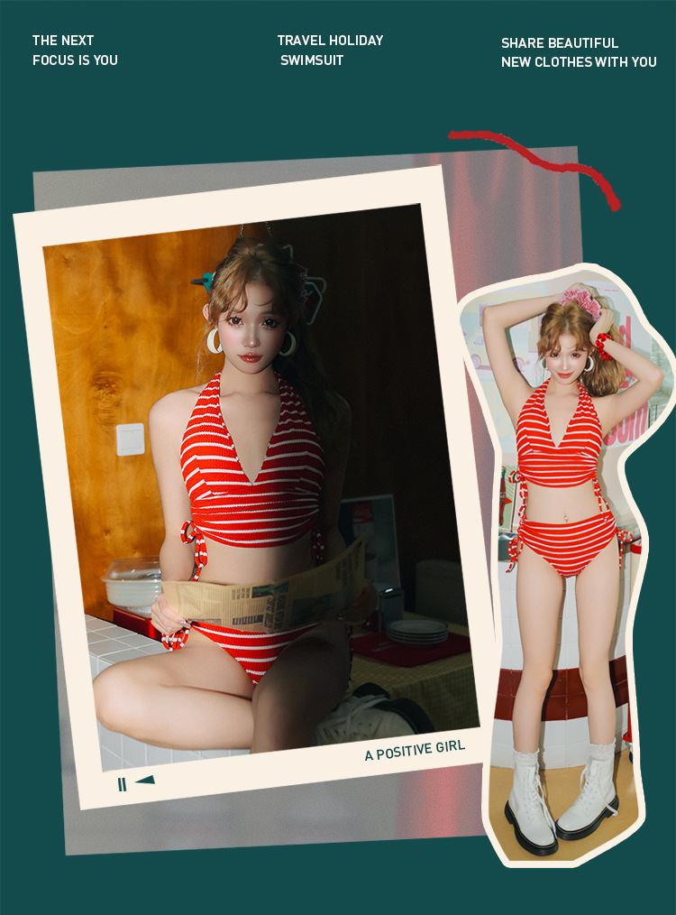 Candygirls 빨간색 줄무늬 수영복 여성의 새로운 온천 분할 유럽과 미국의 섹시한 순수한 휴가 스타일 비키니스토어 가기