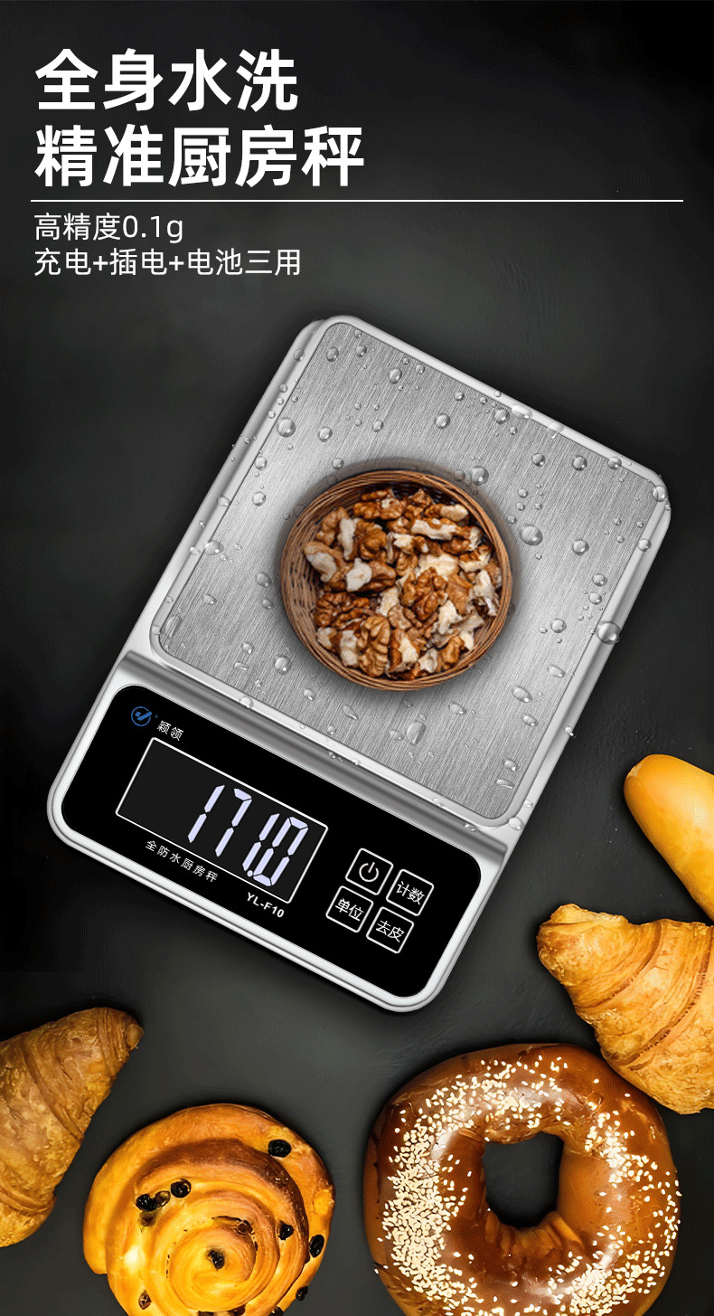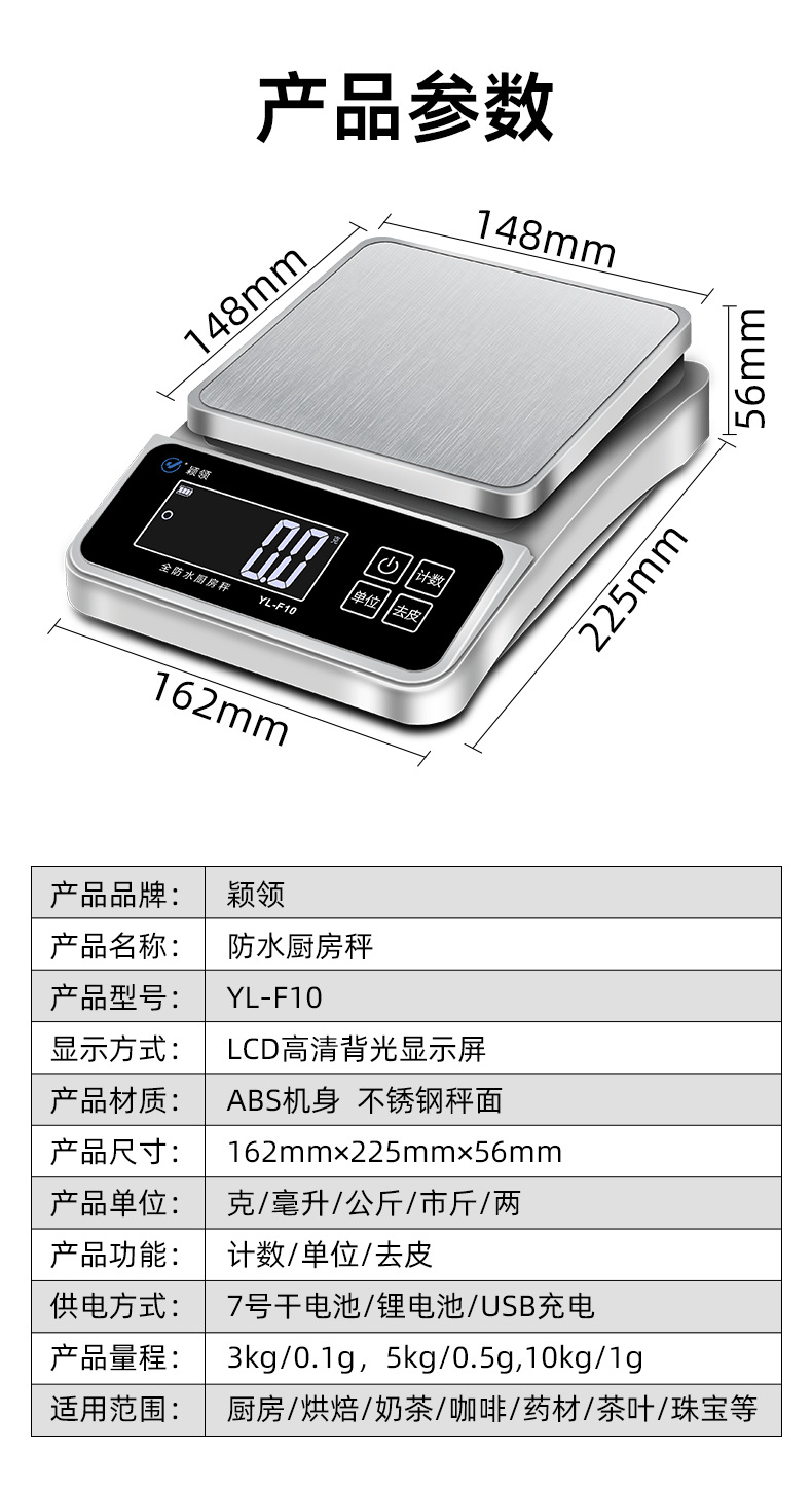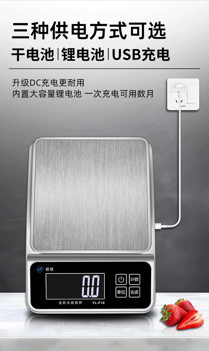• 10kg/1g 삼용모델(USB충전+건전지+리튬배터리) 방수주방저울