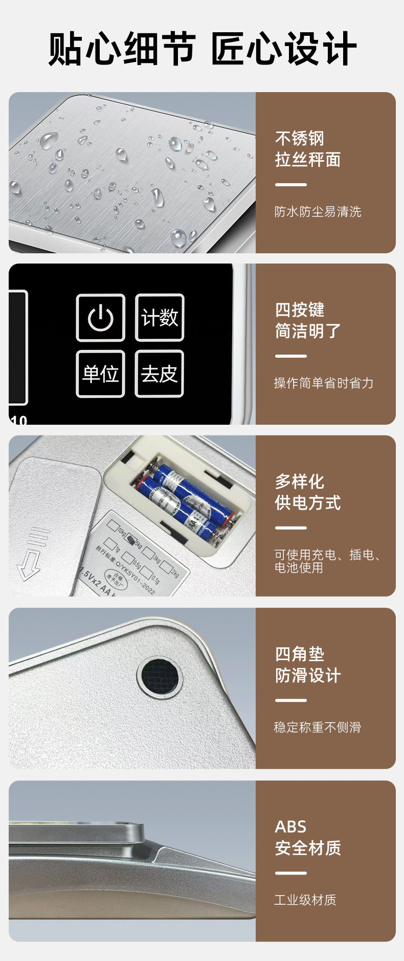 • 5kg/0.5g 삼용모델(USB충전+건전지+리튬배터리) 방수주방저울