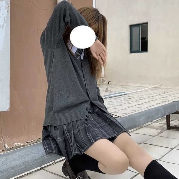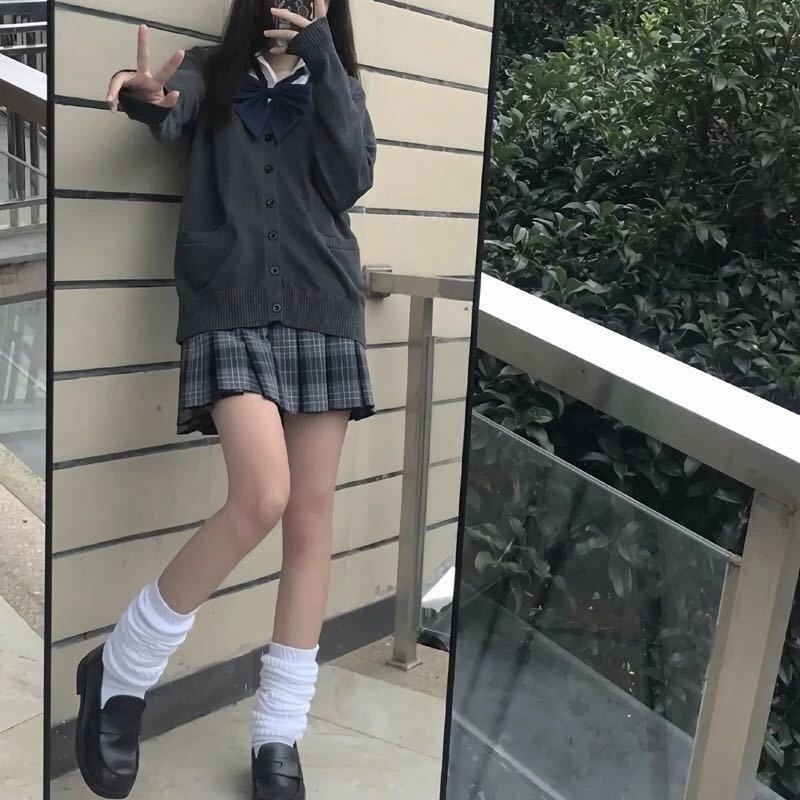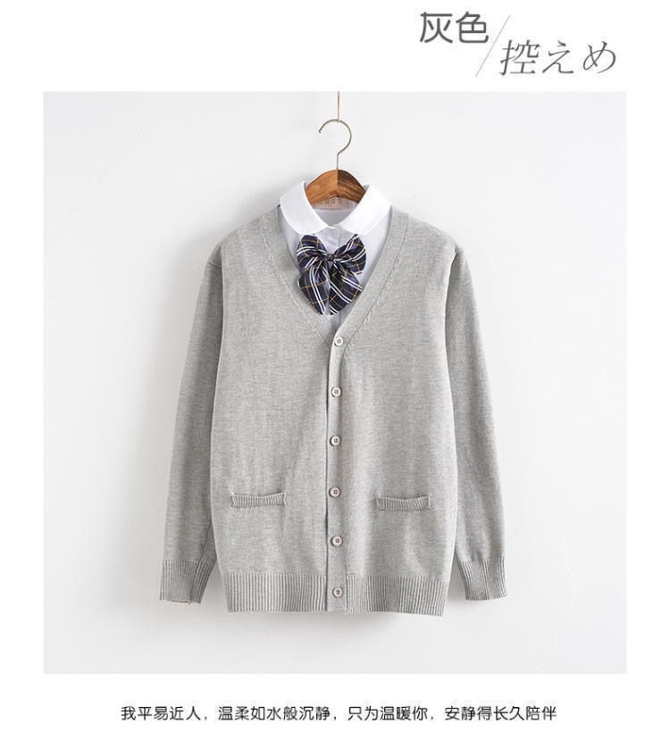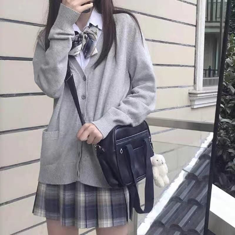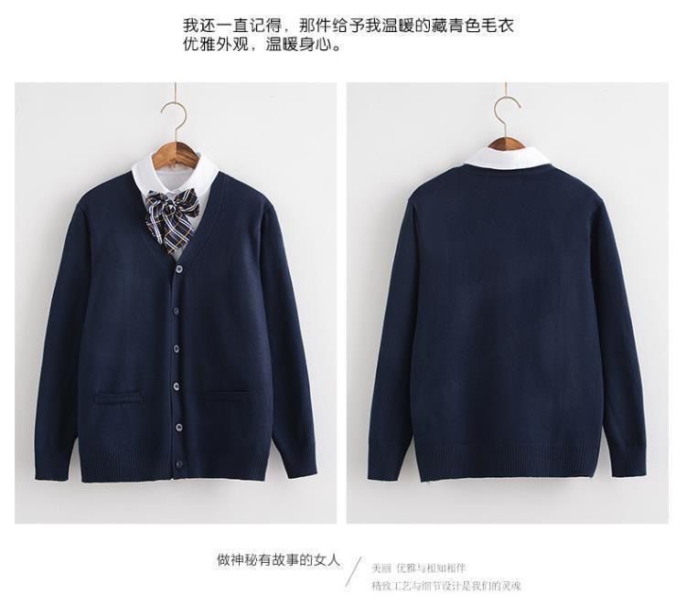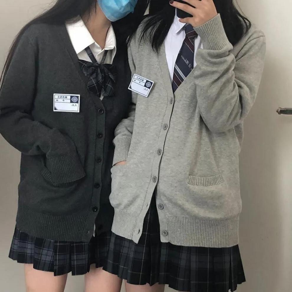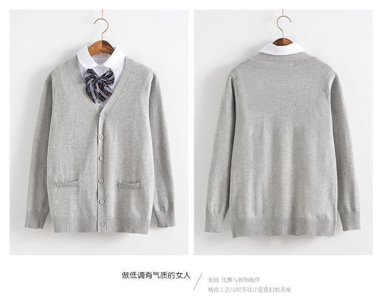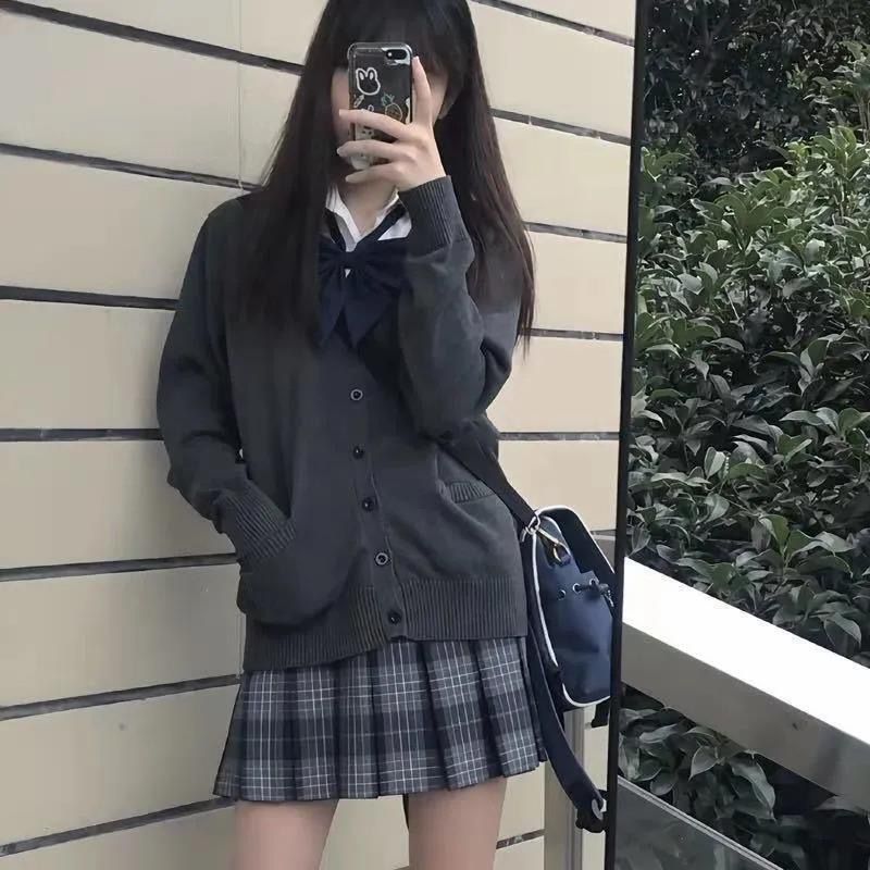 봄과 가을 새로운 긴팔 대학 스타일 일본 올 매치 JK 유니폼 카디건 스웨터 여자 세트 긴팔 V 넥 스웨터스토어 가기