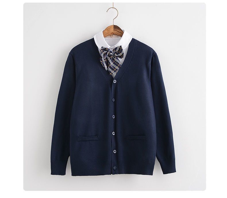 봄과 가을 새로운 긴팔 대학 스타일 일본 올 매치 JK 유니폼 카디건 스웨터 여자 세트 긴팔 V 넥 스웨터