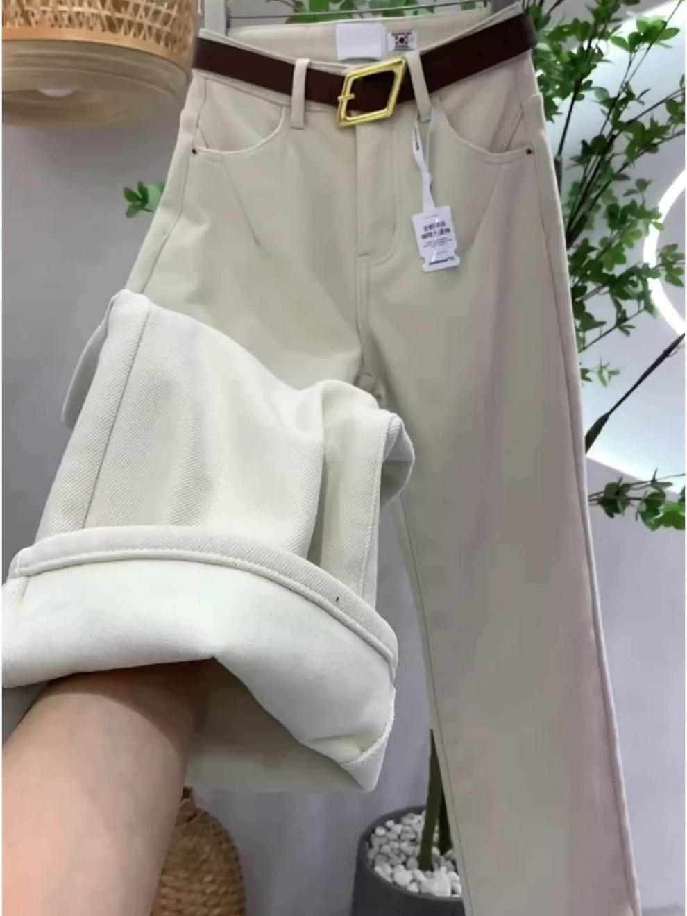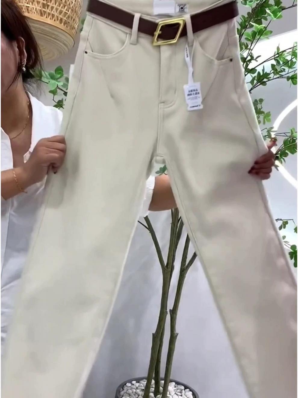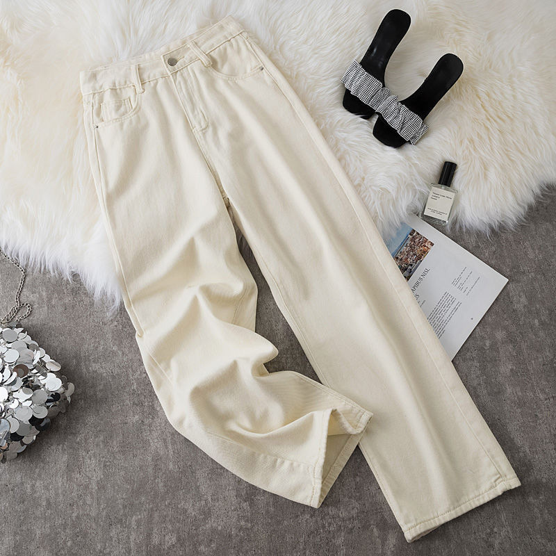 A6C 살구색 하이웨이스트 와이드 레그 청바지 여성용 2025 봄 가을 신상 슬림핏 배형 스트레이트 롱 팬츠스토어 가기