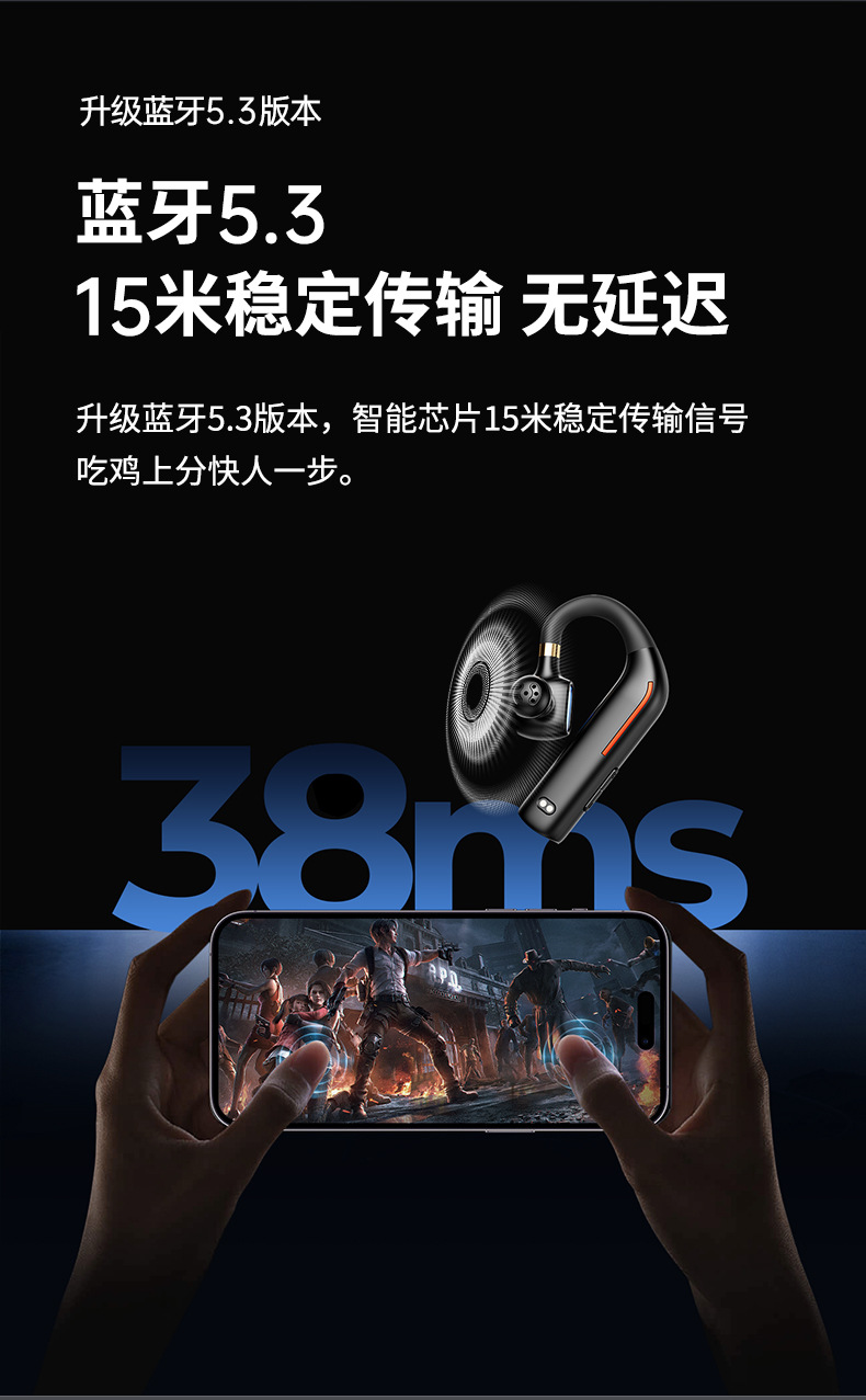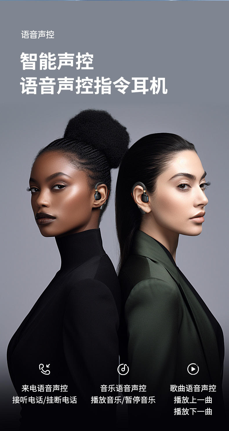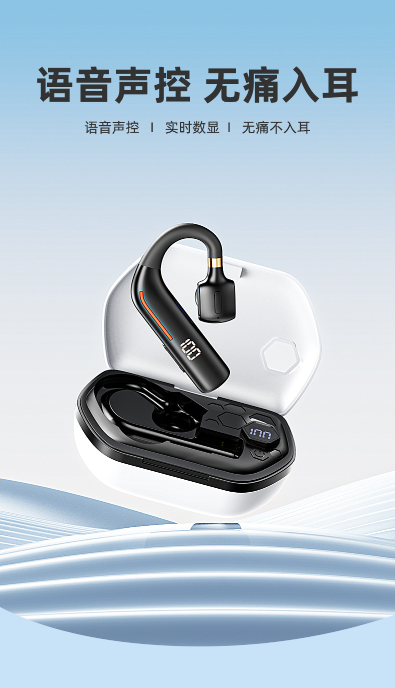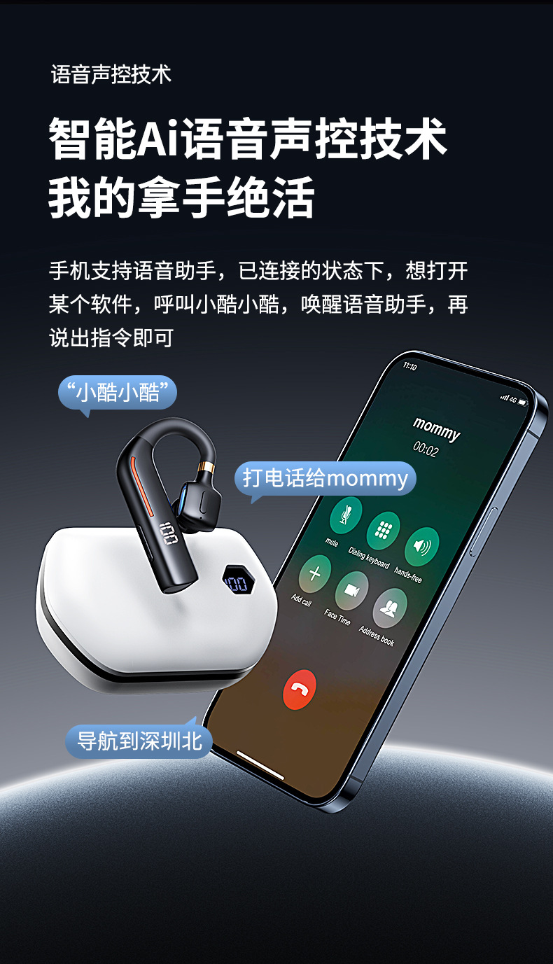 새로운 고급 무선 블루투스 헤드셋, 귀에 걸 수 있는 AI 음성 제어 이름 공개, 귀에 들어가는 것이 없음, 드롭 배송