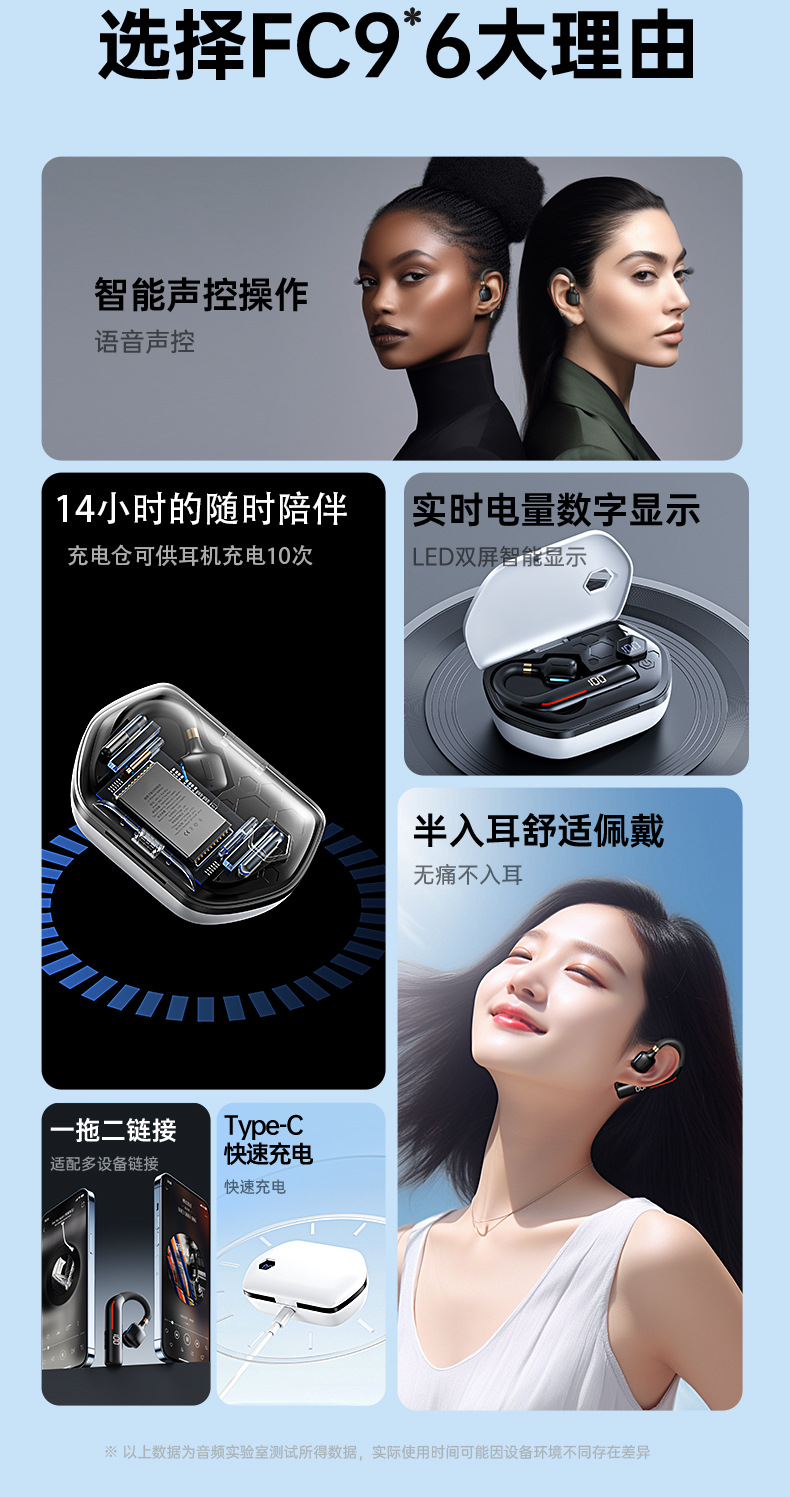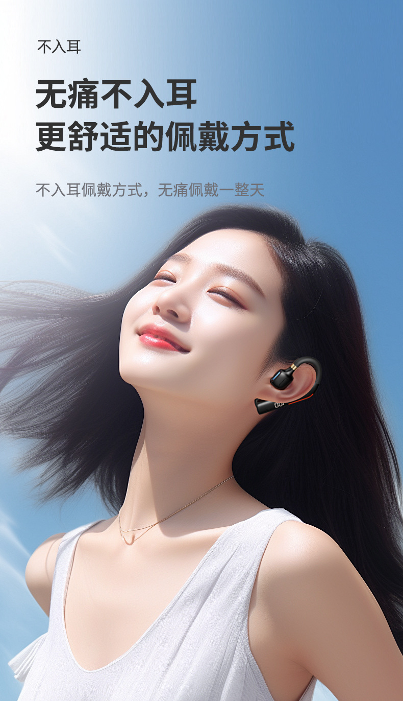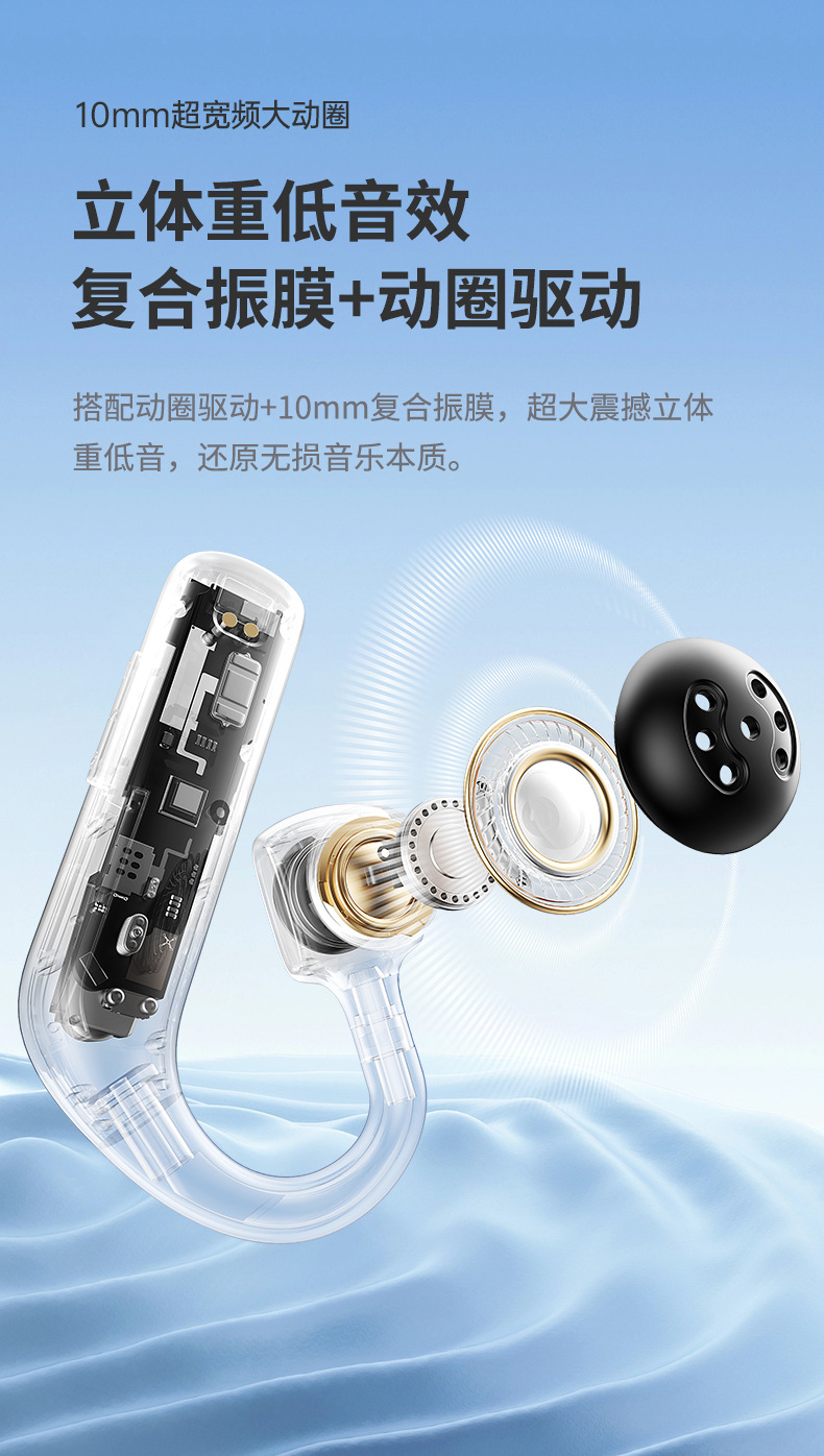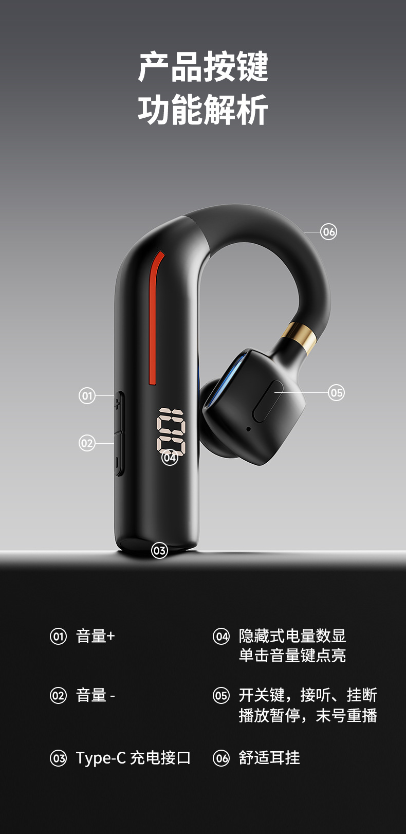 새로운 고급 무선 블루투스 헤드셋, 귀에 걸 수 있는 AI 음성 제어 이름 공개, 귀에 들어가는 것이 없음, 드롭 배송
