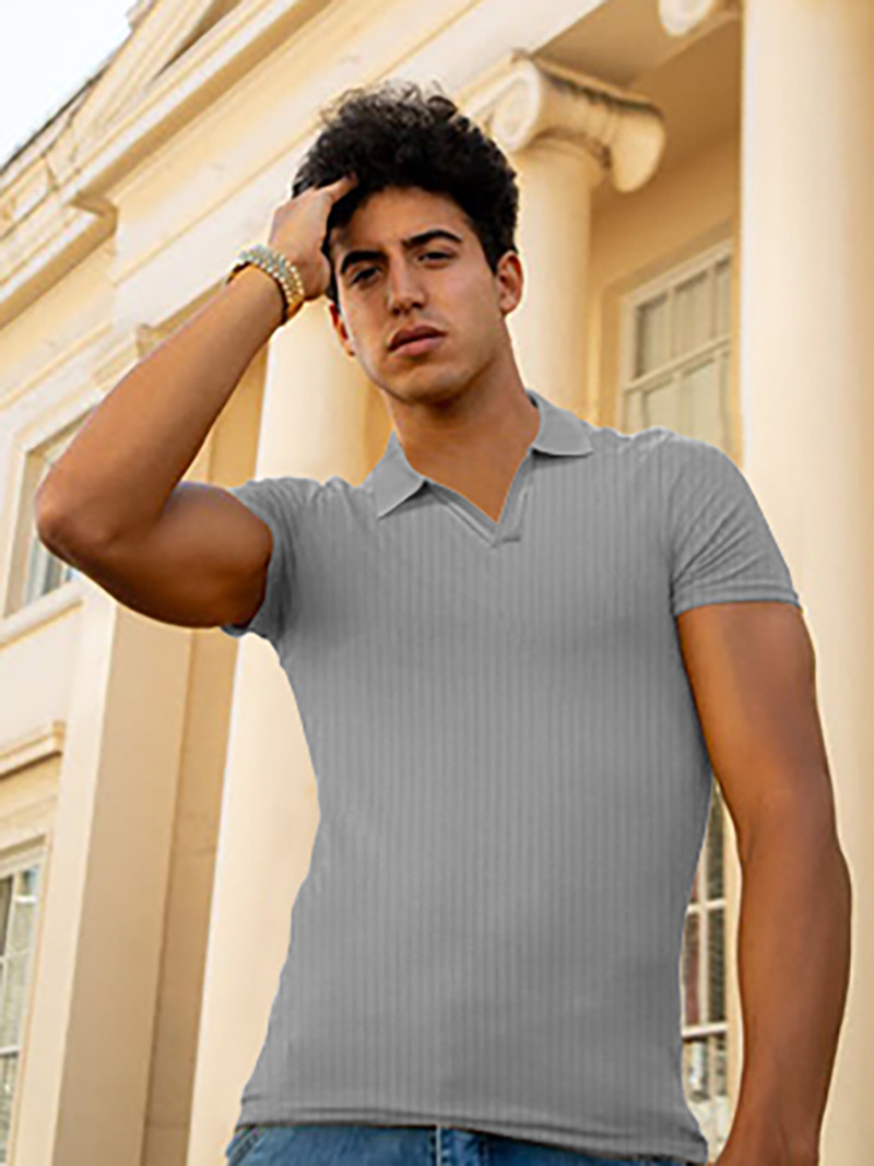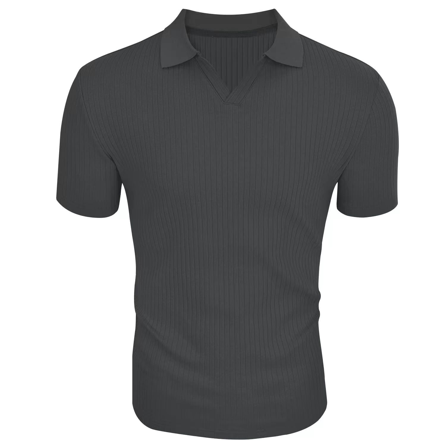 봄과 여름 남성 솔리드 컬러 얇은 맞춤형 v 넥 반팔 폴로 셔츠 크로스 보더 솔리드 v 고탄력 반팔스토어 가기