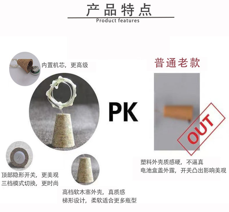 병 마개 램프 끈 LED 발광 와인 병 마개 선물 장식 램프 코르크 구조 3 모드 타이밍 구리 와이어 램프 끈스토어 가기