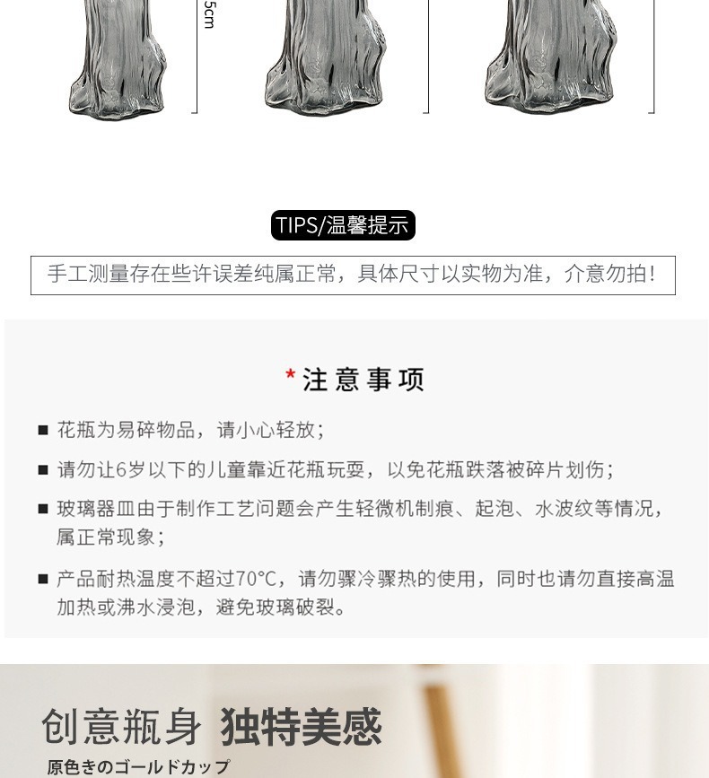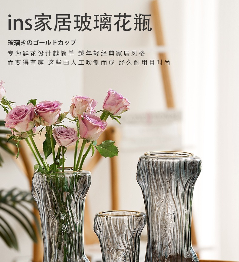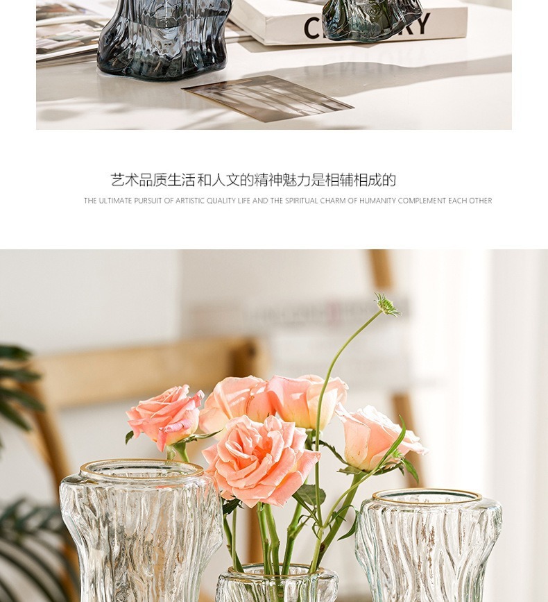 포춘 트리 크리에이티브 꽃병 새로운 스타일 목가적 인 스타일 유리 병 수경 높은 꽃병 홈 거실 인테리어 장식