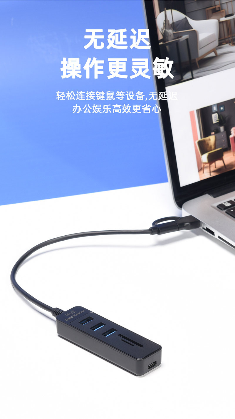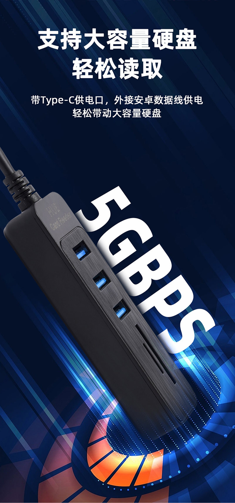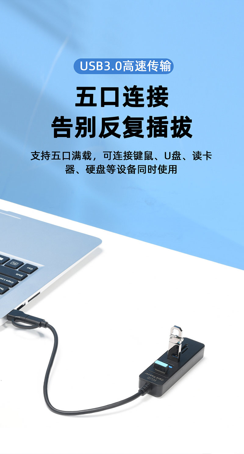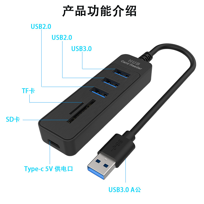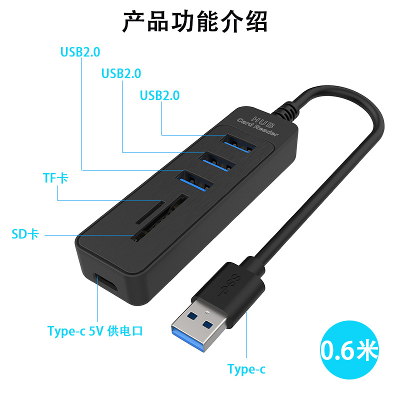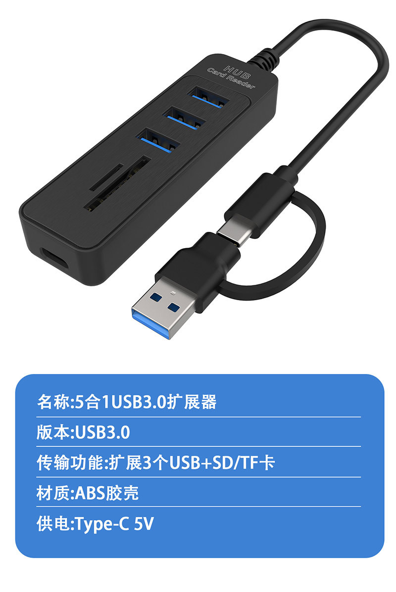 • USB5 in 1 1 포트 3.0+2 포트 2.0+SD/TF 1.2m 와이어 백