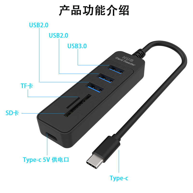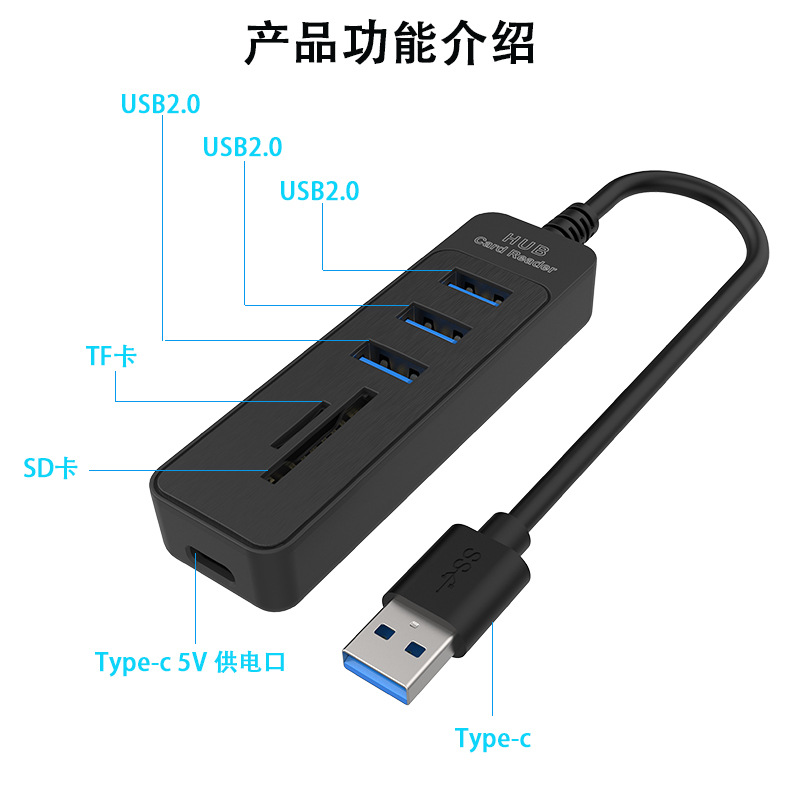• type-c 5-in-1 1 포트 3.0+2 포트 2.0+SD/TF